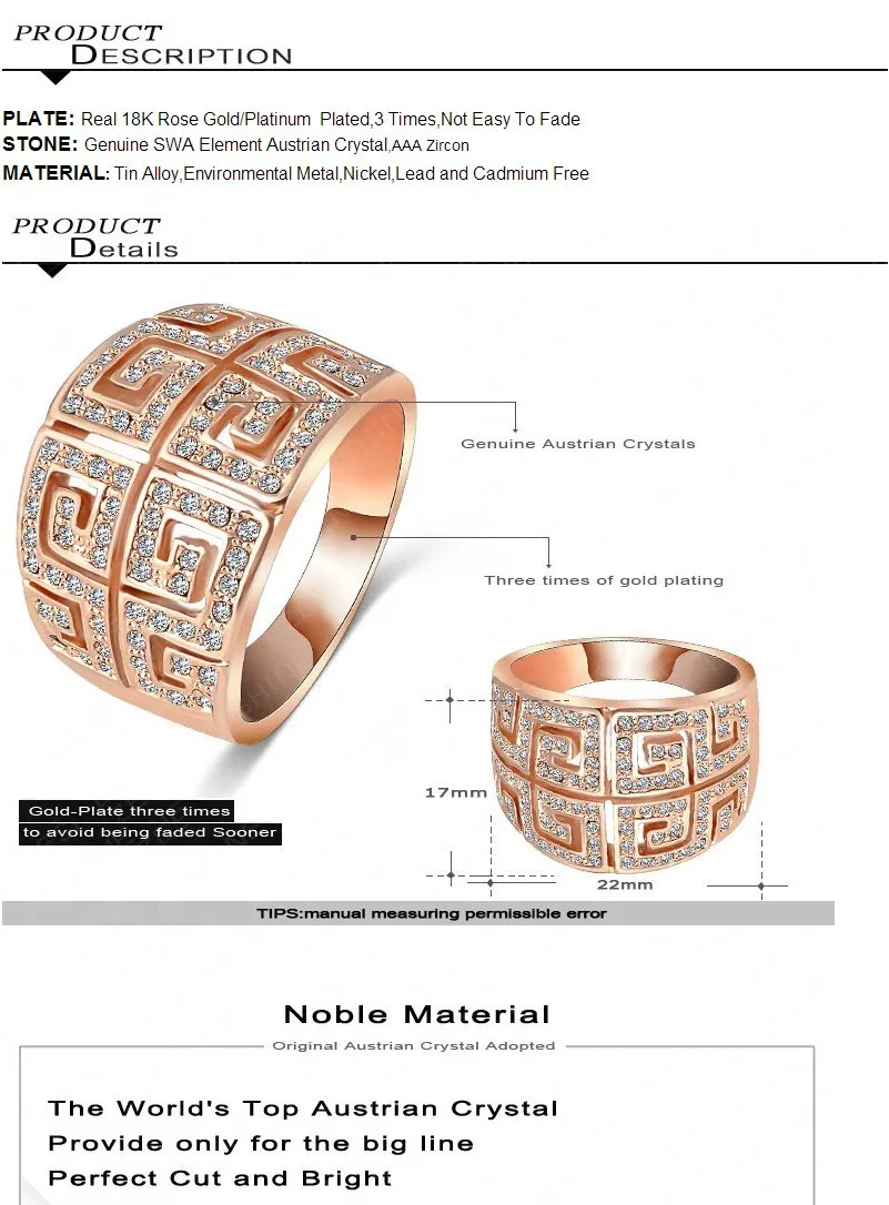 Austrian Crystal Bague Anillo