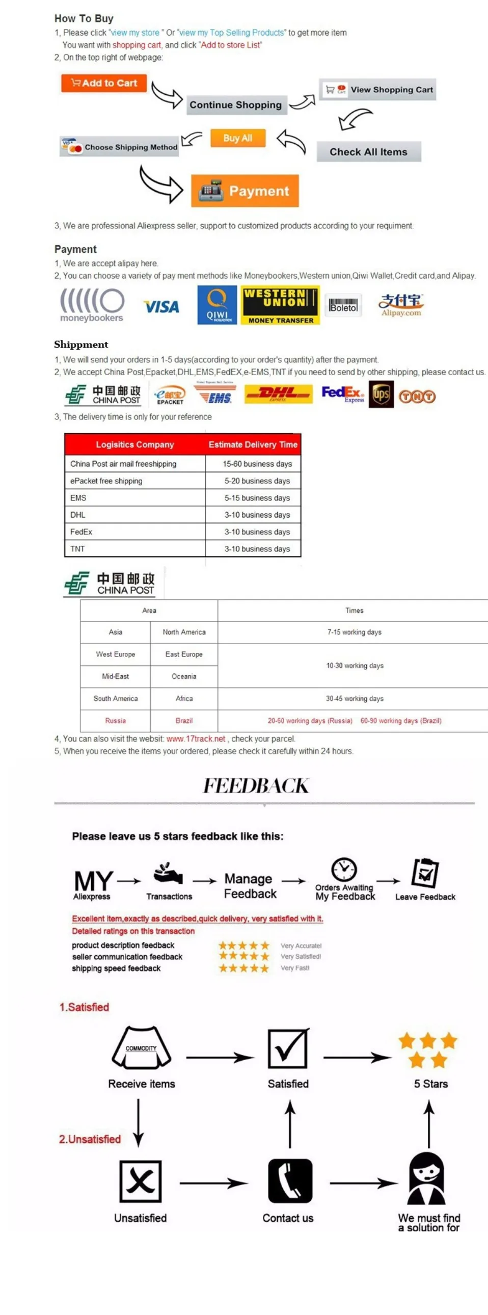 • If you did not receive the product within the guaranteed time( 45 days not including 2-5 day processing) you can request a refund or a reshipment.