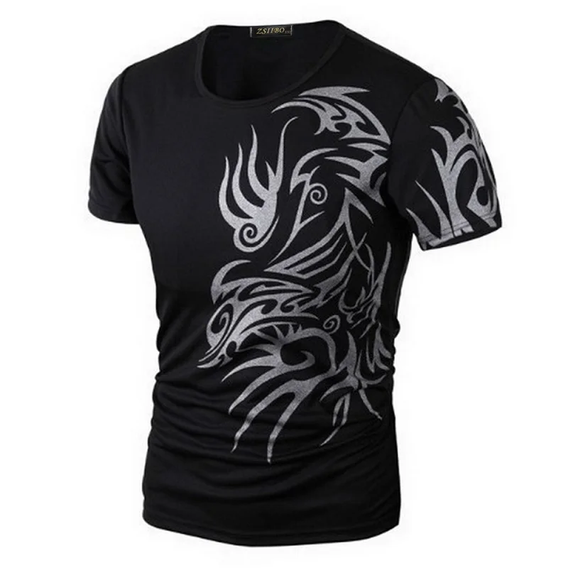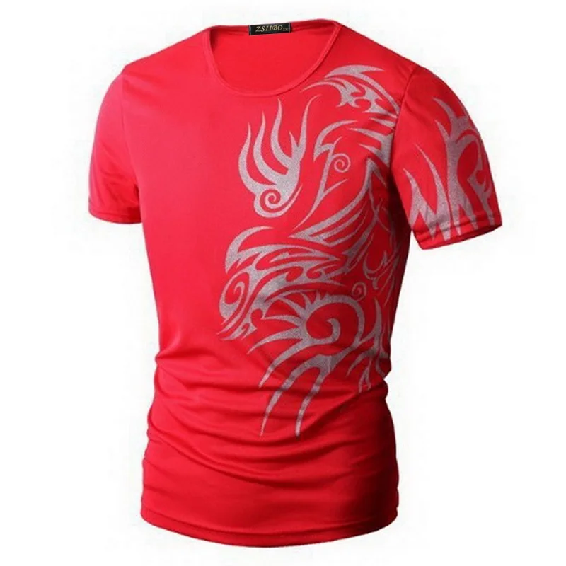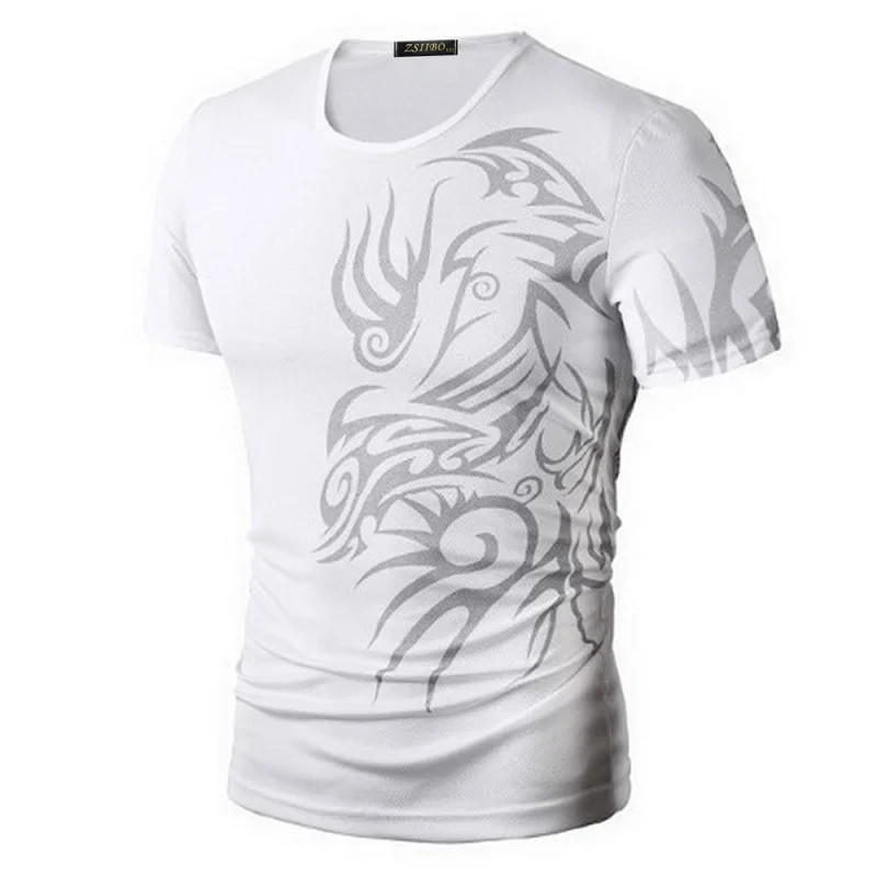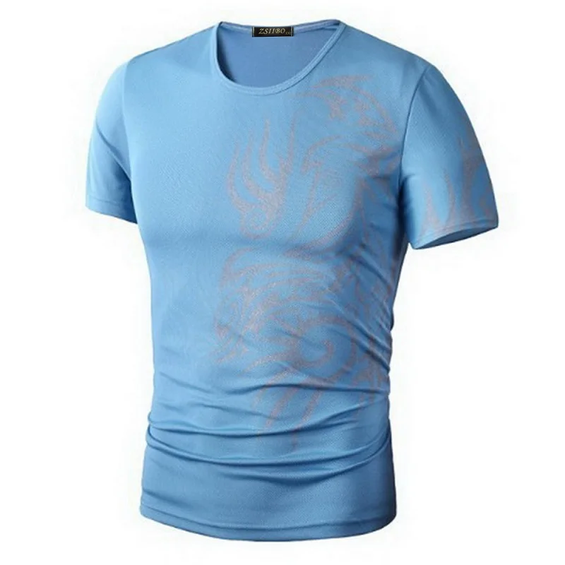 Classical Fast Dry Leisure Print T Shirts Men’s Novelty Dragon Print Tatoo Male O Neck T Shirts Short Sleeve 5 Colors TX70 P