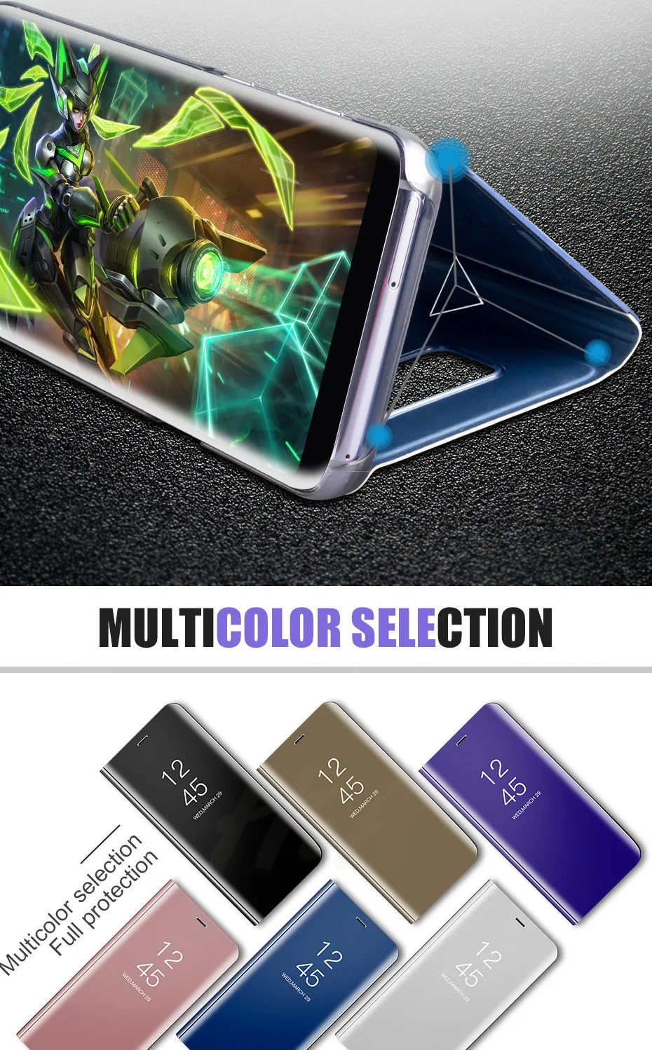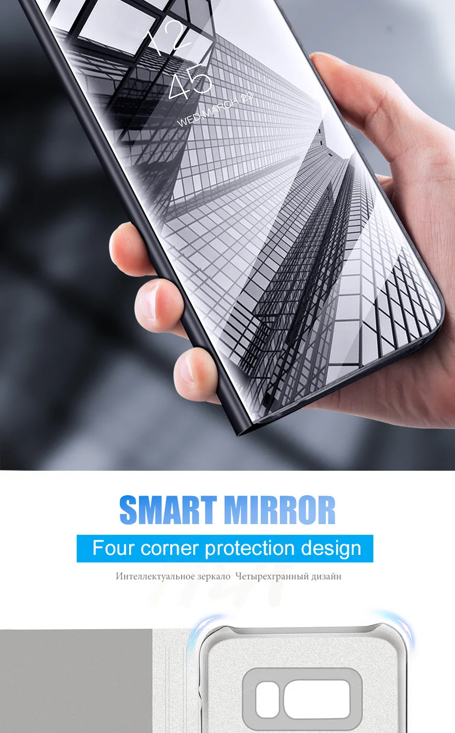 Clear Mirror Smart Phone Case For Samsung Galaxy S8 S7 J7 J5 J3 A8 A7 A5 A3 Flip Stand Cover For Samsung S9 S8 Plus Note 8 Case