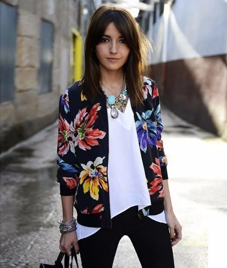 Women Jackets 2017 Autumn Winter New Fashion Ladies Floral Printed Patchwork Zipper Casual Jackets Outwear Plus Size JK002