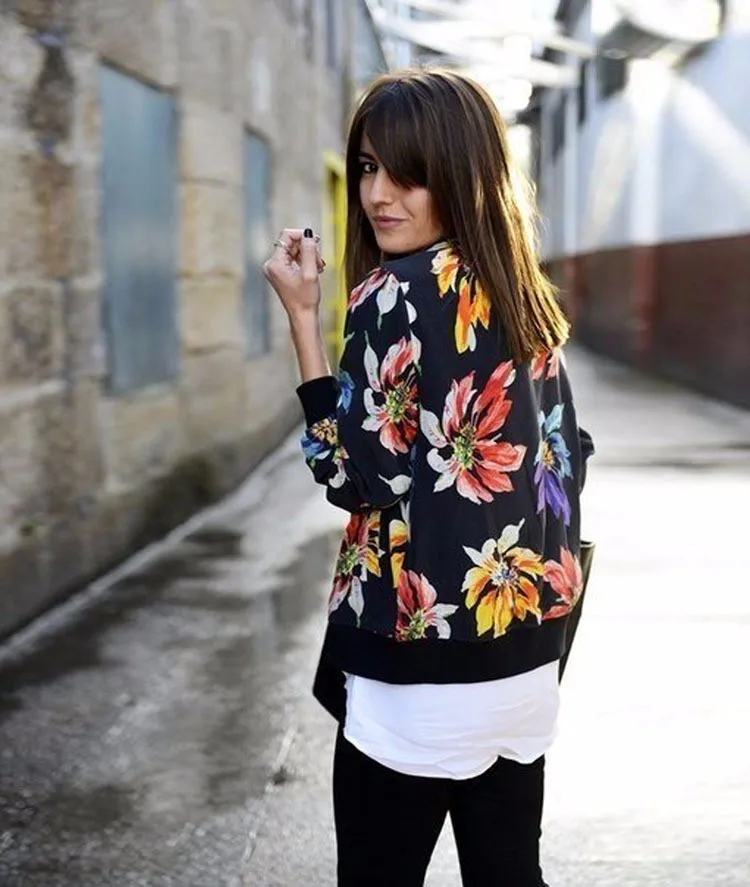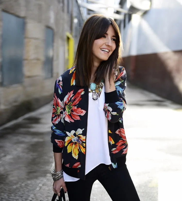 Women Jackets 2017 Autumn Winter New Fashion Ladies Floral Printed Patchwork Zipper Casual Jackets Outwear Plus Size JK002
