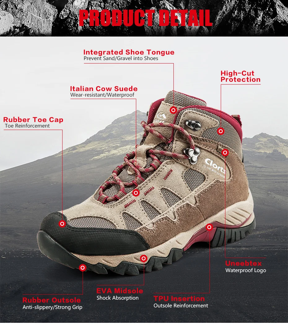 Clorts Women Hiking Boots Waterproof Trekking Shoes Suede Outdoor Shoes Woman Mountain Shoes HKM-823B/E/F