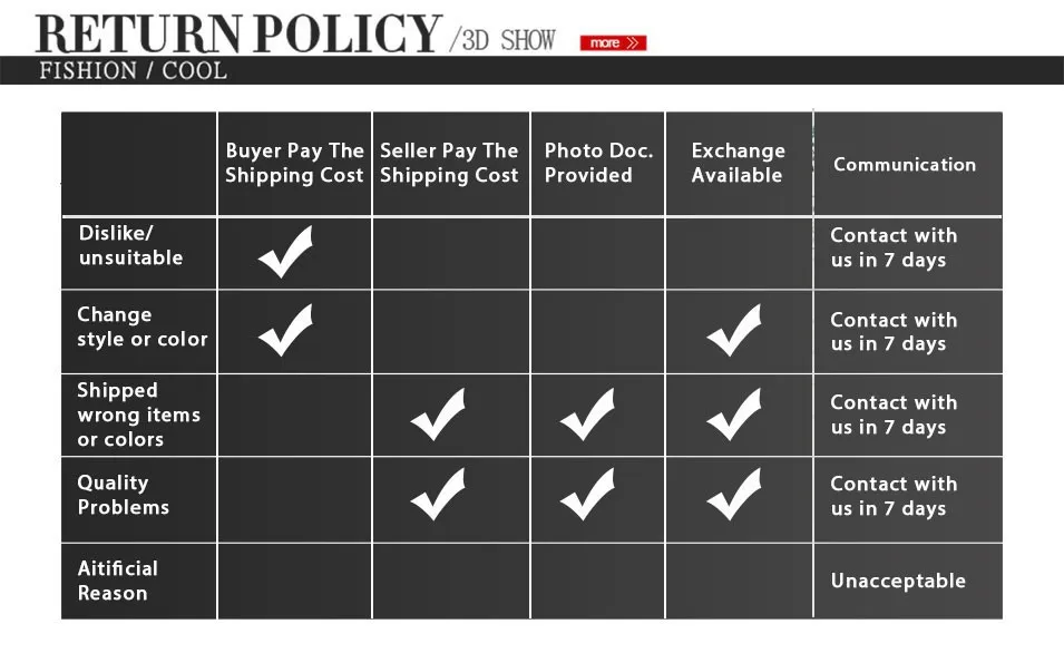 • If you received the wrong item you can request a refund or a reshipment.