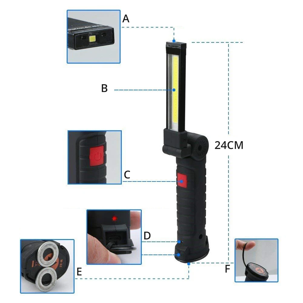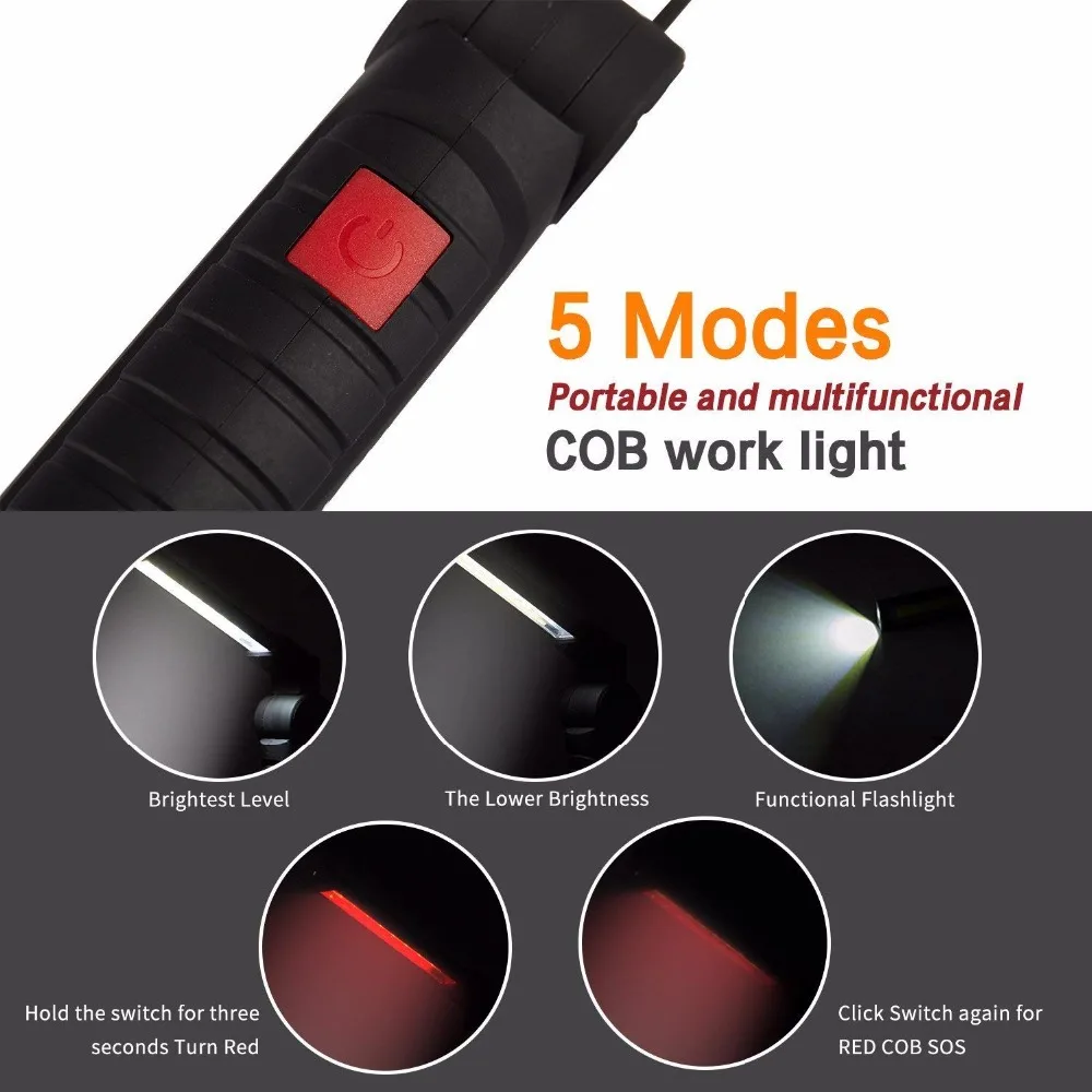 COB LED flashlight Work light USB rechargeable Inspection Light 5 modes Tail magnet design Hanging torch lamp 2 sizes waterproof