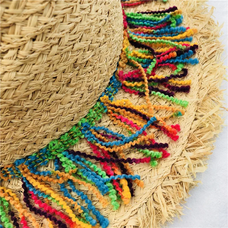 Coloerfull Tassel Ribbon Decorate Straw Hat Shading Sun Hat Lady Fashion Beach Hat Jazz Summer Hat for Woman