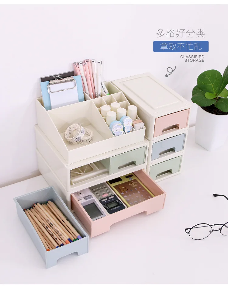 Coloffice Japanese-style plastic drawer cabinets desktop debris storage box Office student stationery stationery storage box 1pc