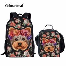 Coloranimal Set Bady School Bags Cute Pet Dog Print Children Mochilas Infant Floral Yorkie Backpack Men Kids Schoolbags Satchel