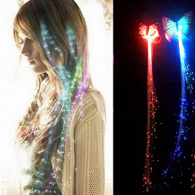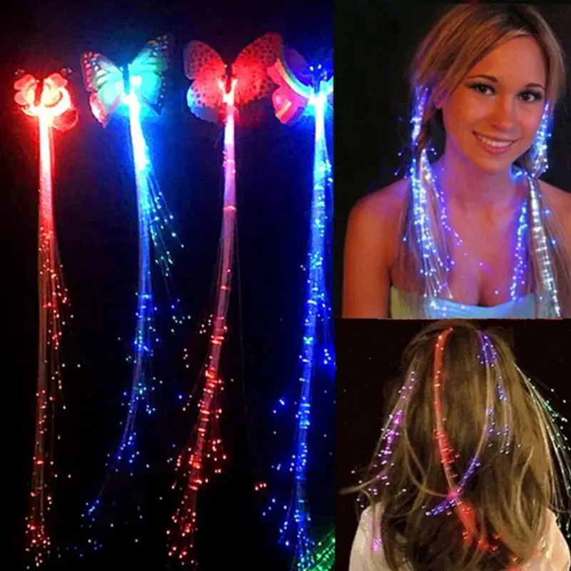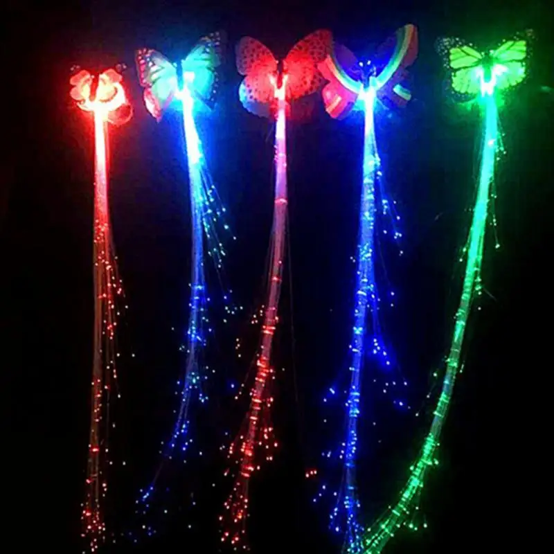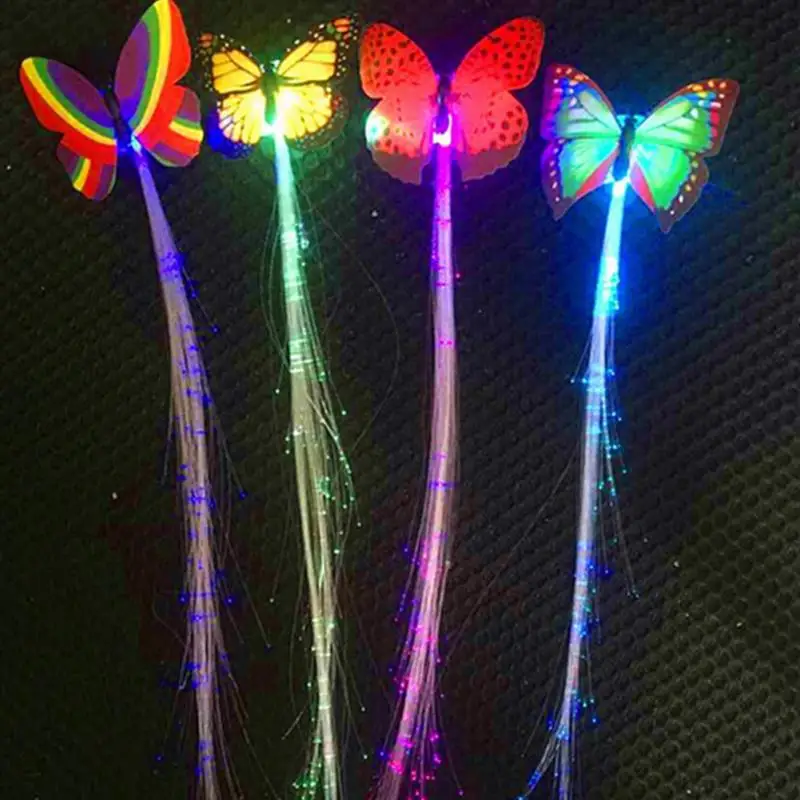 Colorful Butterfly LED Wigs Glowing Flash Hair Accessories Braid Clip Hairpin Decoration Ligth Up Show New Year Christmas Party