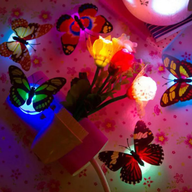 Colorful Changing Butterfly LED Nigh-Light Lamp Kids Rooms Party Wall Decor HOT