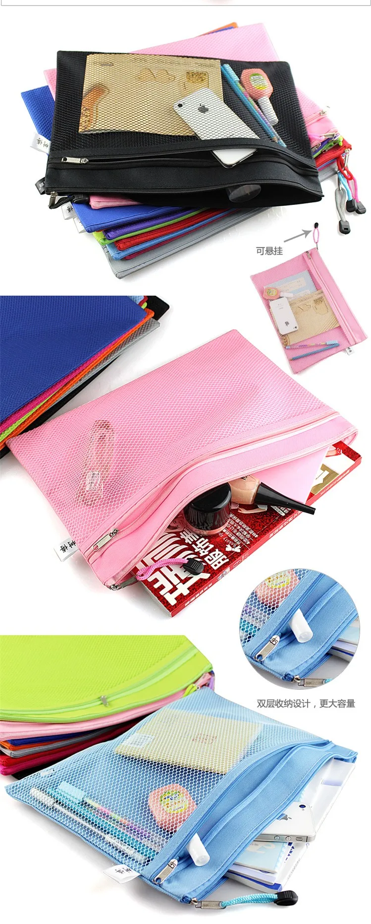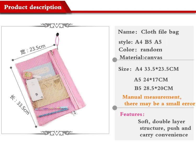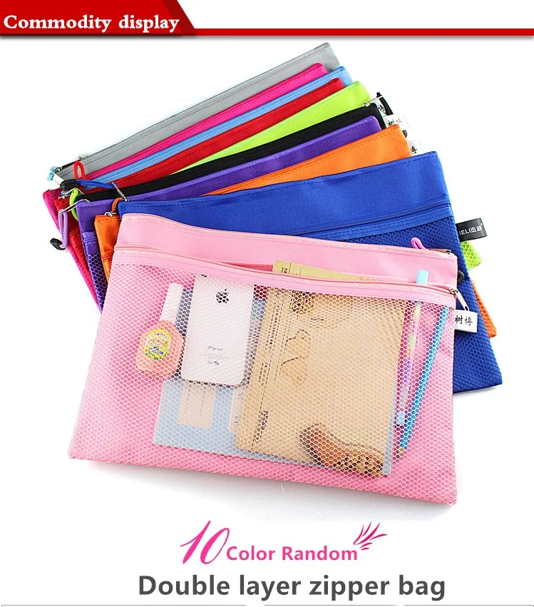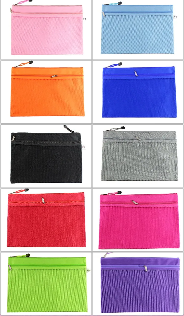 Colorful Double Layer canvas Cloth Zipper Paper File Folder Book Pencil Pen Case Bag File Document Bags free shipping