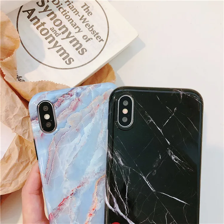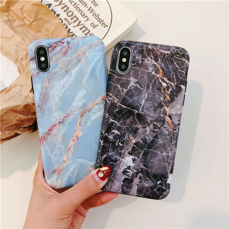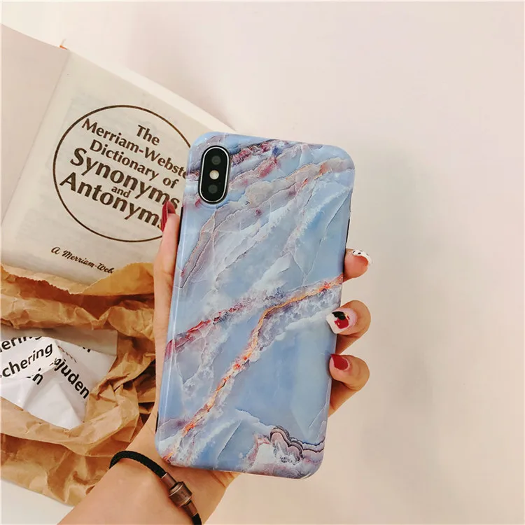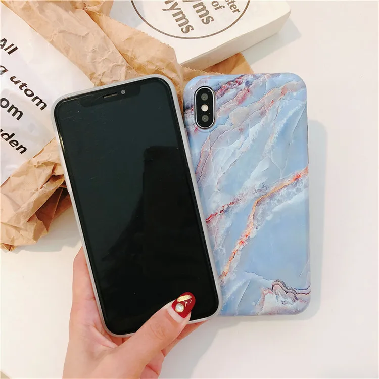 Colorful Smooth Vintage Granite Stone Marble Texture Phone Cases For iPhone 6 6s 7 8 Plus Soft IMD Couples Back Cover Coque