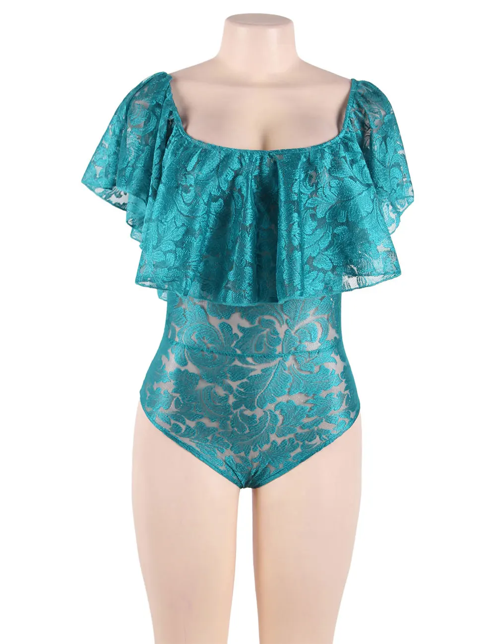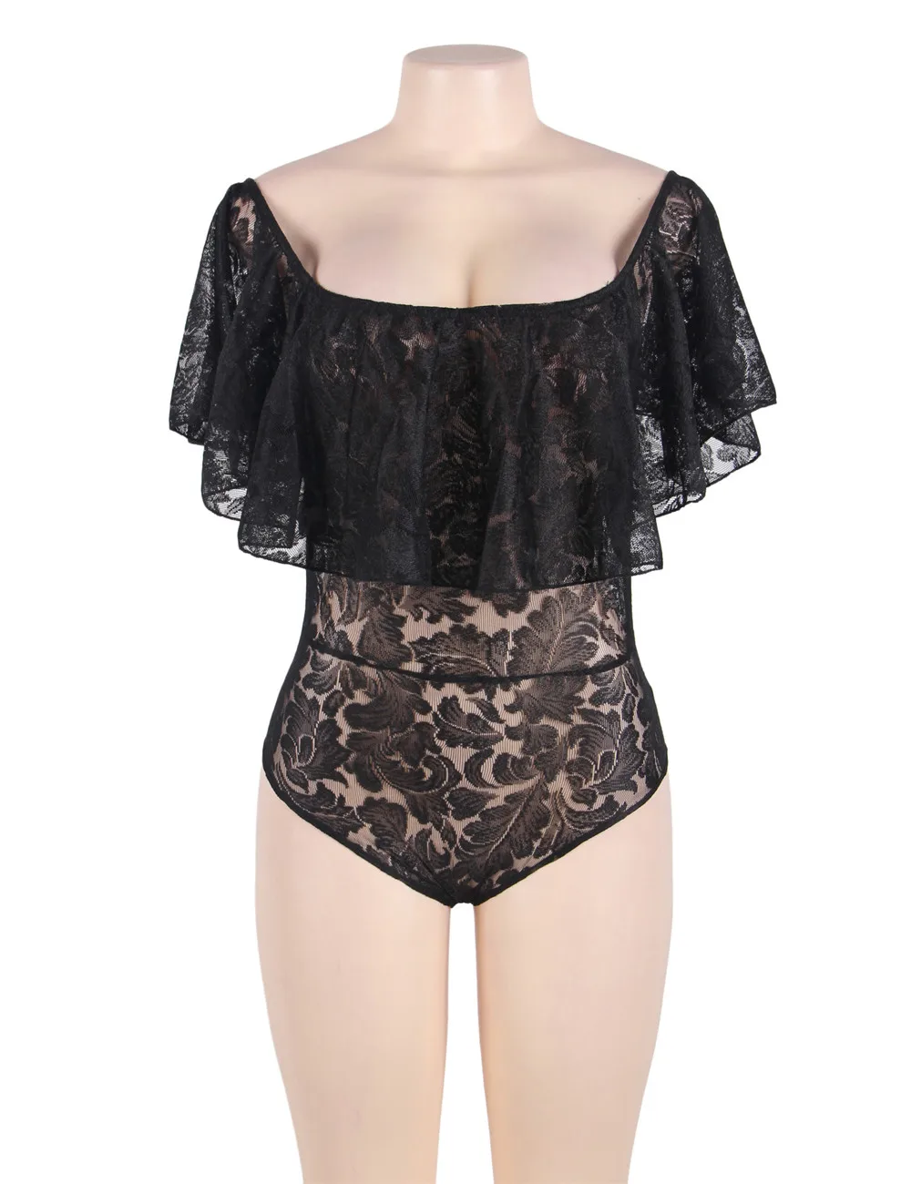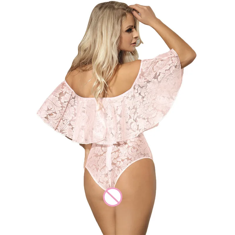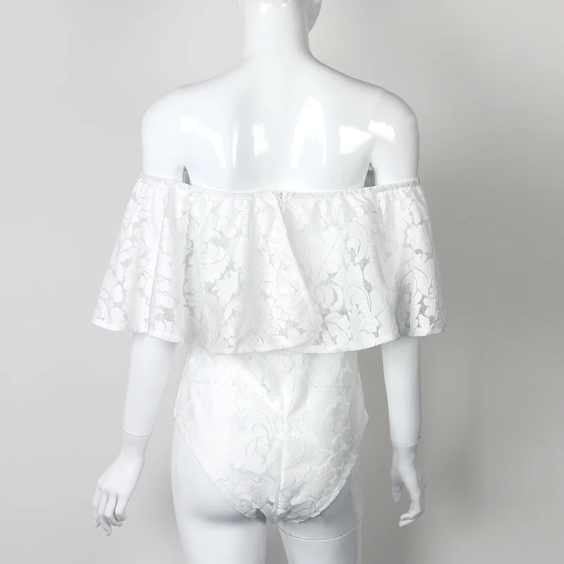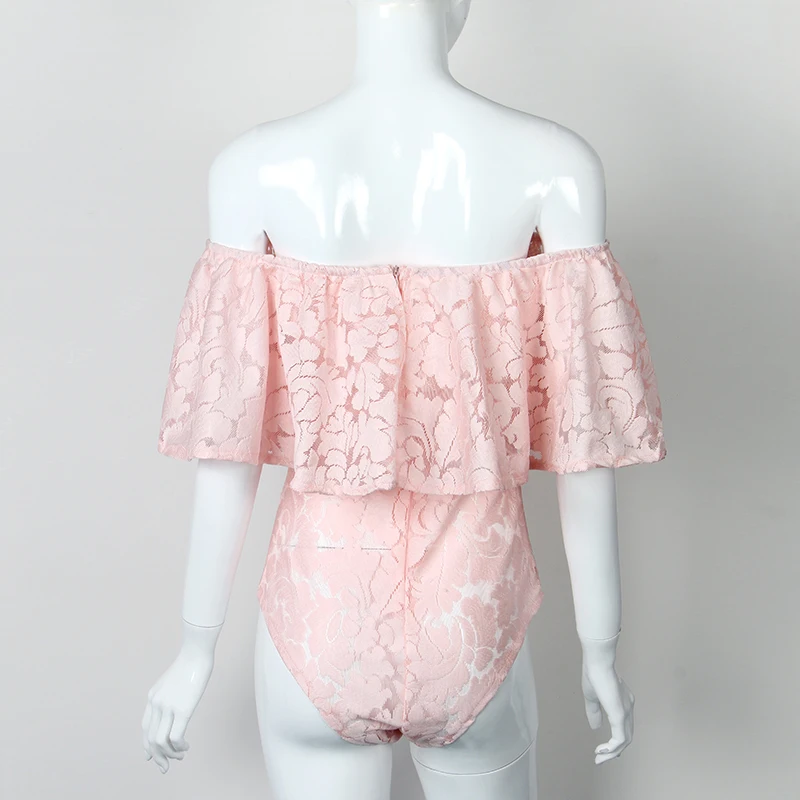 Comeondear Body Manche Longue Femme Lace Ruffle Off Shoulder Black Pink White Plus Size Jumpsuits And Rompers For Women RJ80496 Detail Show :