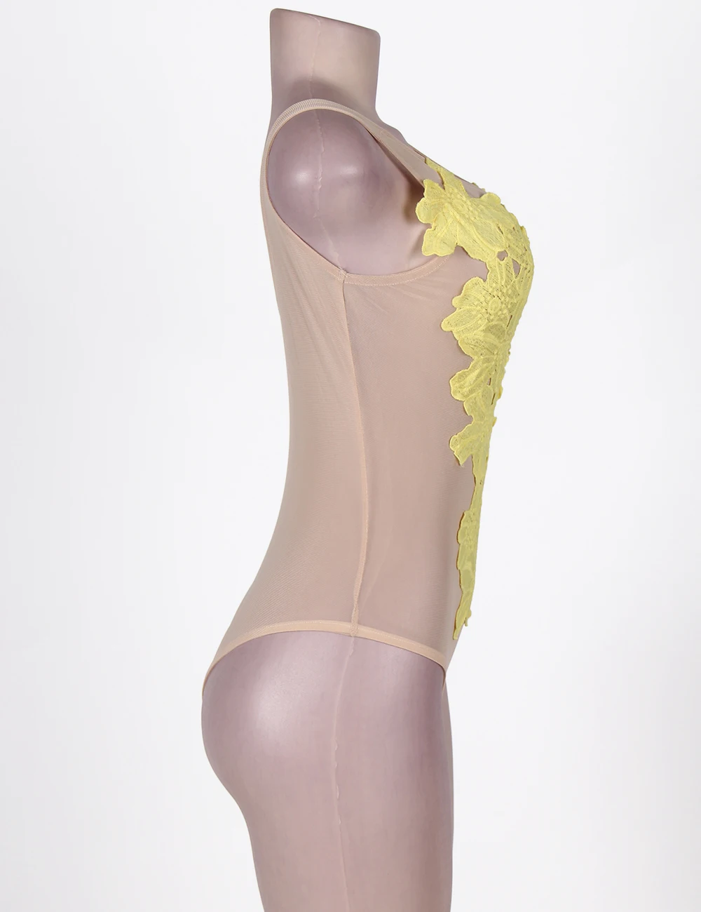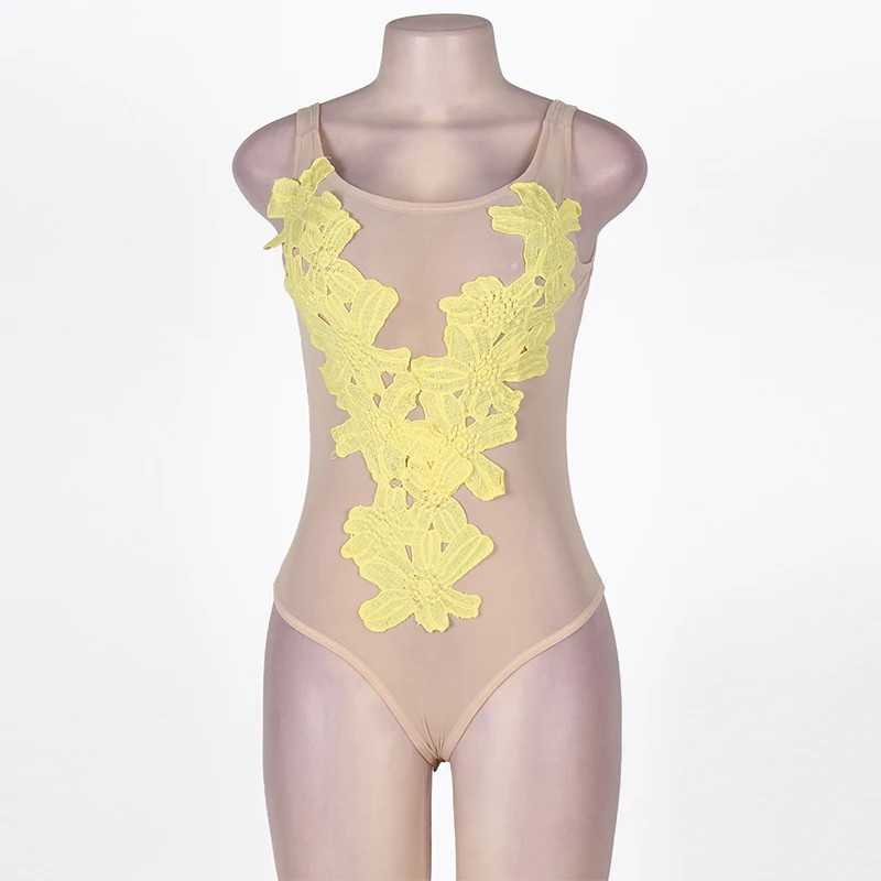 Comeondear RA80304 Sexy Mesh Bodysuit Top Lace Flower Embroidery Summer Bodysuit Women Overalls Body Mujer Macacao Feminino Detail: