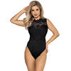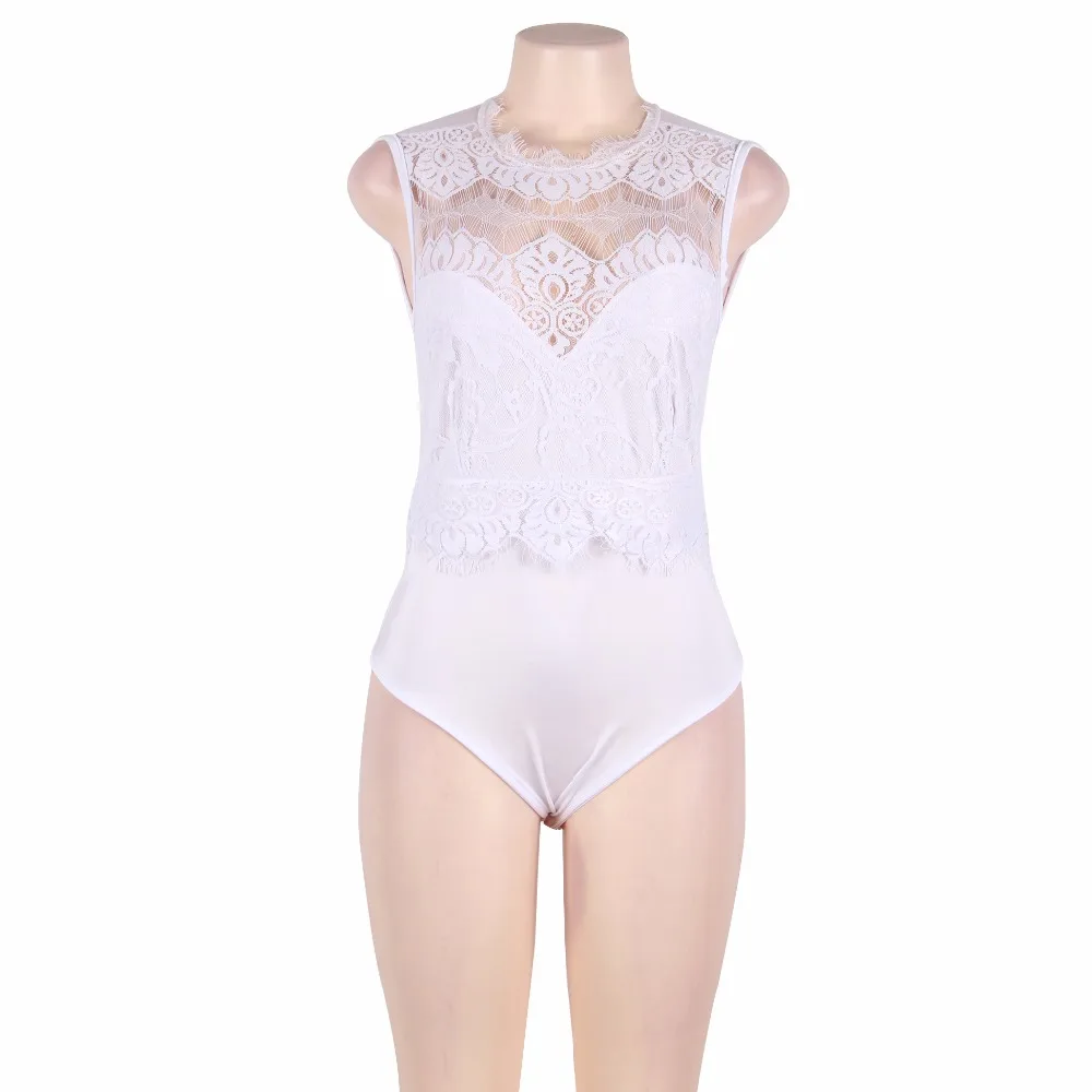 Comeondear Romper Short Women Plus Size Lace Fitness Jumpsuit High Neck White Black Pink Lace Cut Out Spandex Bodysuit RK80472