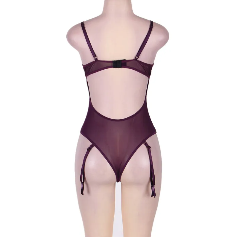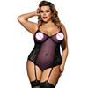 Comeondear Sexy Playsuit Plus Size Lace Up Floral Embroider Dantel Body Suits RK80304 Black White 2XL Sheer Mesh Bodysuit