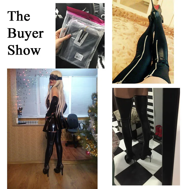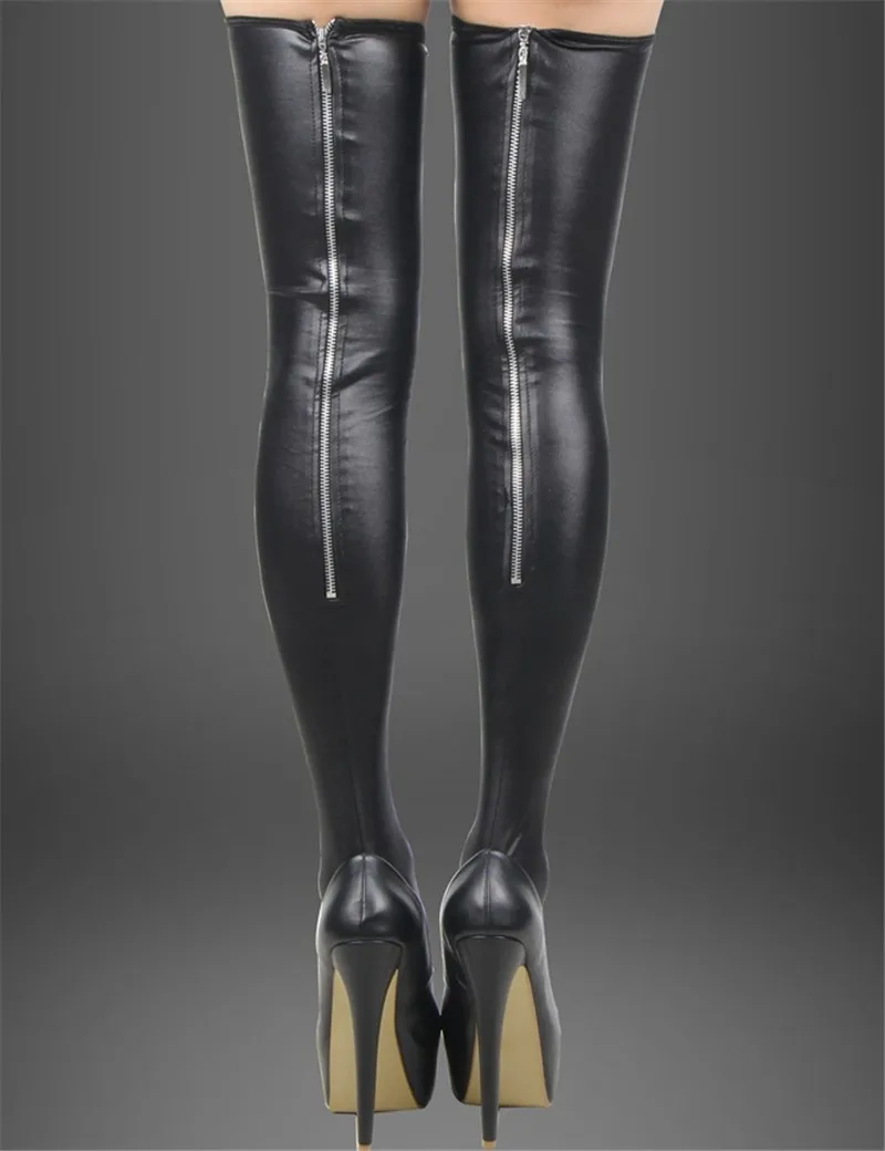 Comeonlover Black Leather Stockings Erotic Back Zipper Women Thigh High Stockings Sexy Lady Trendy Leg Wear Stocking Boots