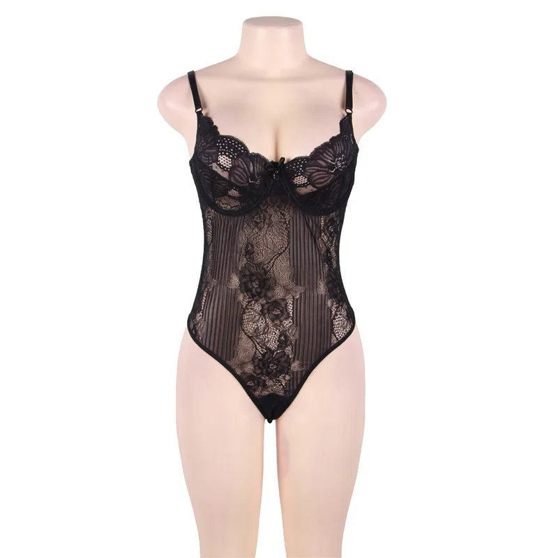 Comeonlover Glamour Underwire Hollywood Sheer Lace White Black Sexy Plus Size Rompers Bodysuite Sexy Women Bodysuit RI80536