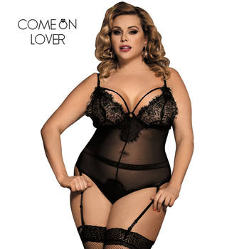 Comeonlover Glamour Underwire Hollywood Sheer Lace White Black Sexy Plus Size Rompers Bodysuite Sexy Women Bodysuit RI80536 Detail Show :