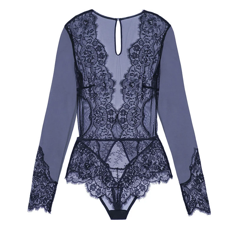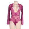Comeonlover Lace Elegant Jumpsuit Sexy Bodysuit Playsuit V Neck Long Sleeve Women Bodysuit Plus Size Bodysuit Sexy RI80400