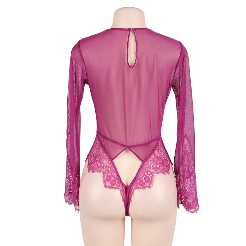 Comeonlover Lace Elegant Jumpsuit Sexy Bodysuit Playsuit V Neck Long Sleeve Women Bodysuit Plus Size Bodysuit Sexy RI80400 Detail Show :