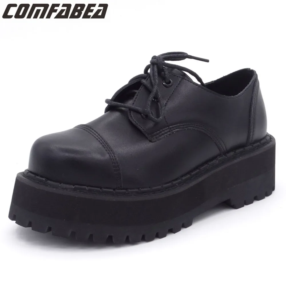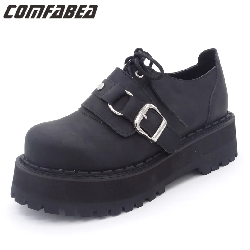 COMFABEA Spring Autumn Women Flats 2018 Creepers platform shoes Punk Buckle Student Shoes Ladies Casual shoes