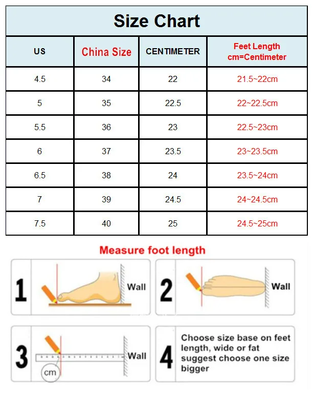 Wide or fat feet are suggested to wear one size bigger.