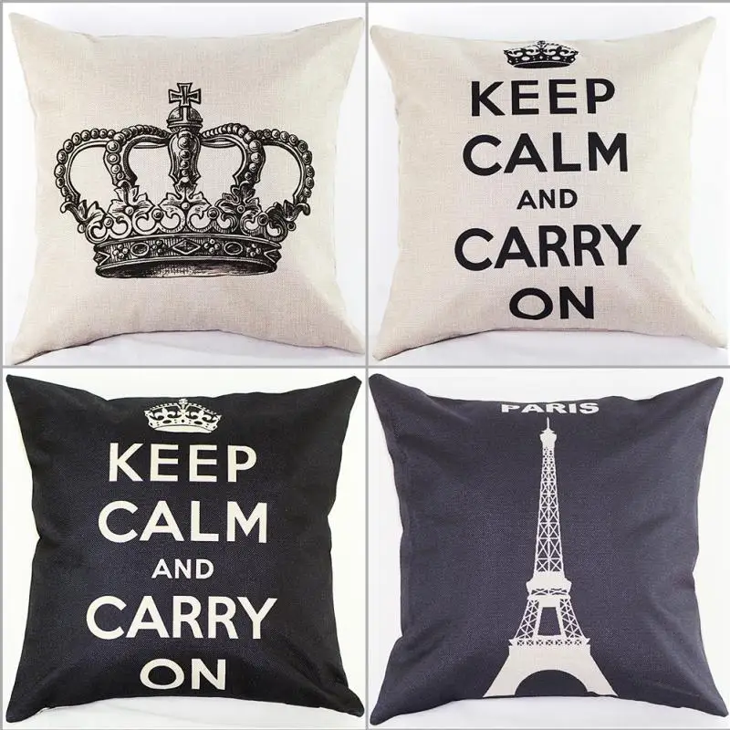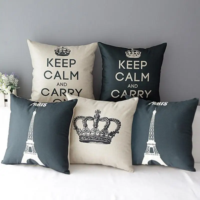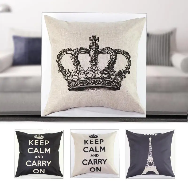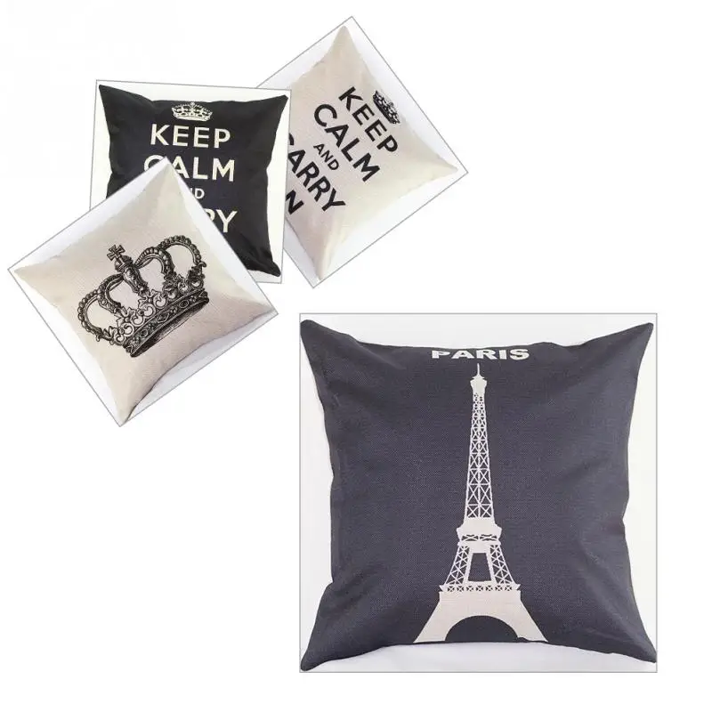 Comfortable Cotton Linen Leaning Cushion Pillow Cover Home Pillowcases Crown Paris Tower Pattern Coussin Pillow Cases