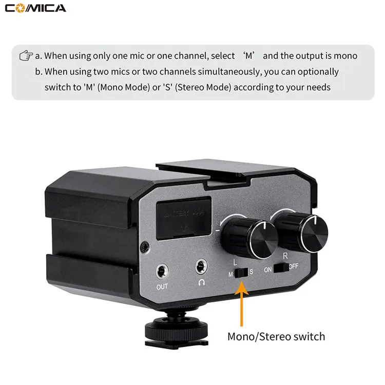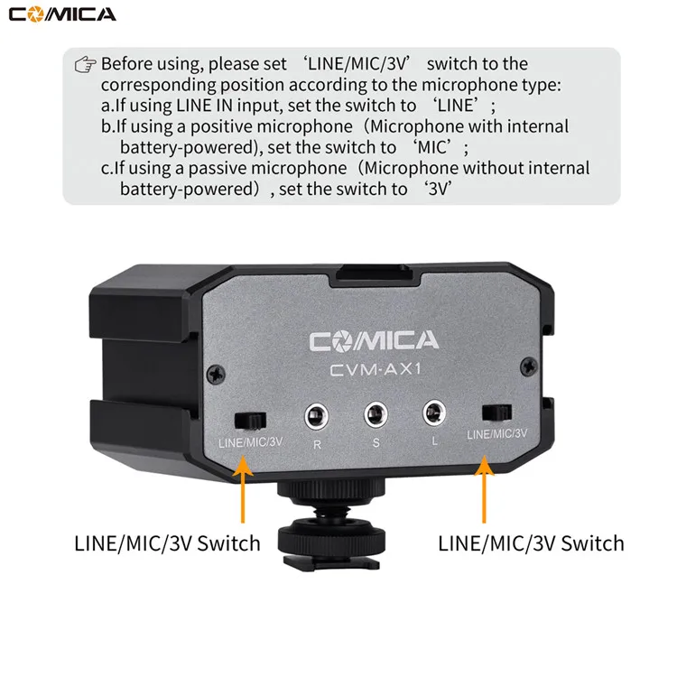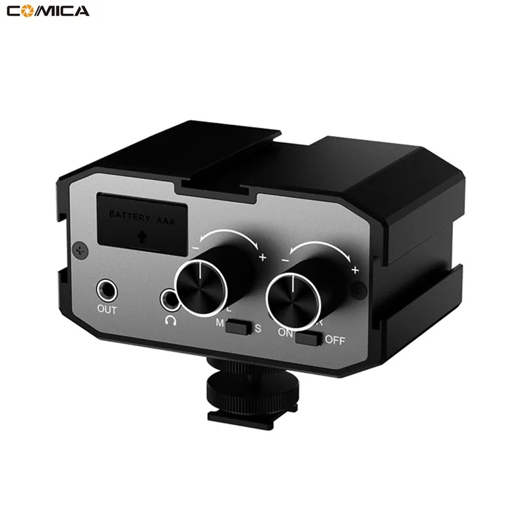 Comica CVM-AX1 Audio Mixer Adapter Universal Dual Channels Microphone Amplifier Audio Mixer 3.5mm Port for Canon Nikon DSLR