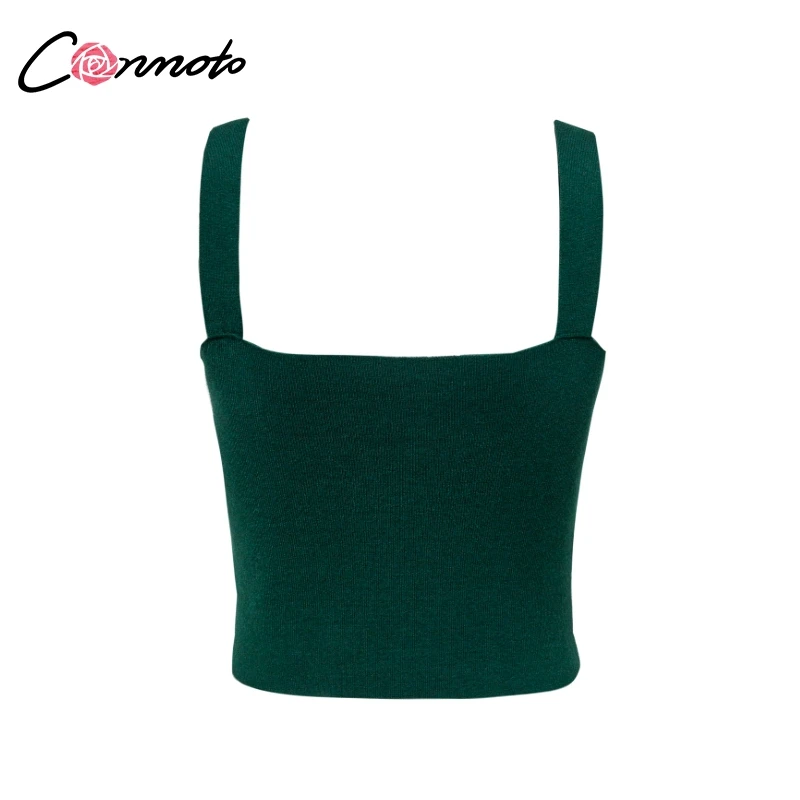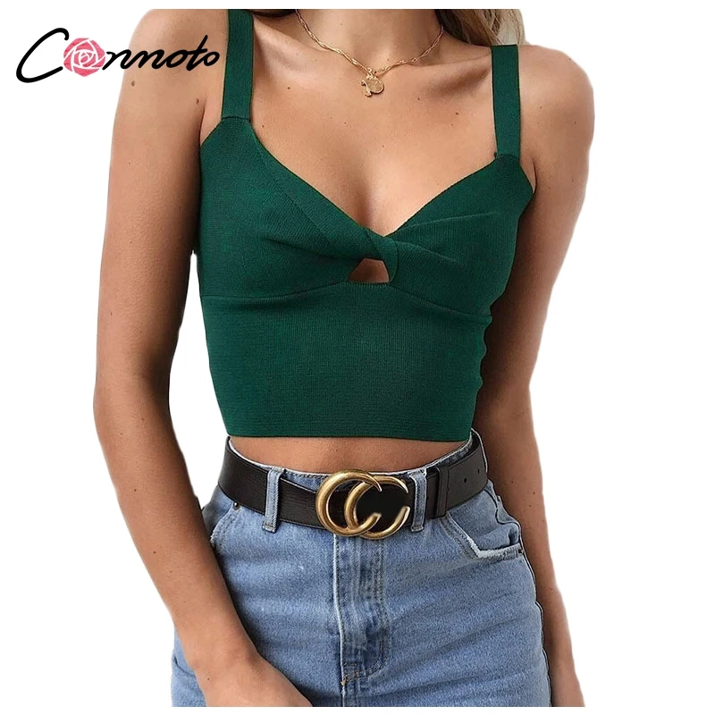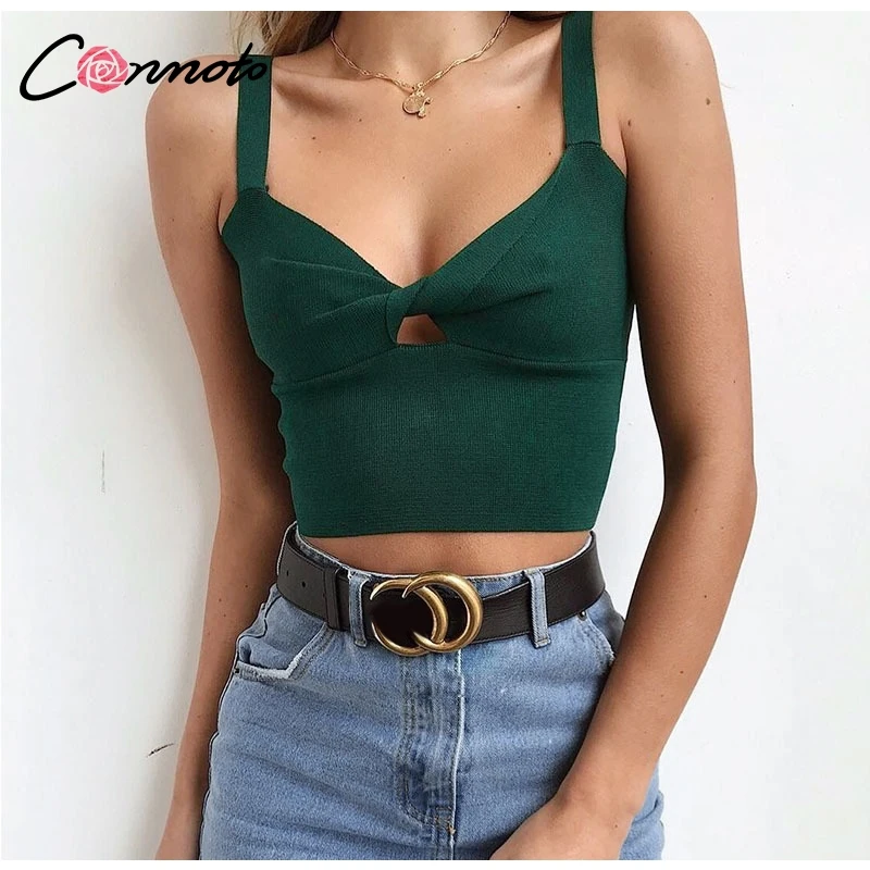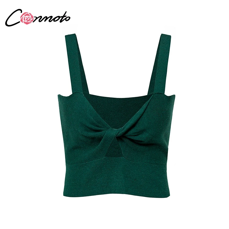 Conmoto Cropped Tank Top Sexy V Neck Solid Slim Knitted Tops Women Sleeveless Streetwear Bow Top Female Green Camis 2018 Fall