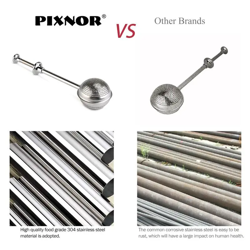 This item is a nice and practical tea infuser, which is made of stainless steel. Spring loaded push type handle that opens and shuts the infuser easily, just add tea leaves into the strainer and stir into hot water to make tea. The ball strainer makes a wonderful addition to the kitchen of any tea drinker, it is a wonderful tea accessory for mutiple use.