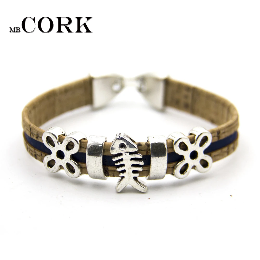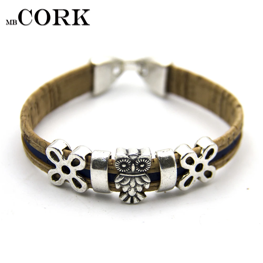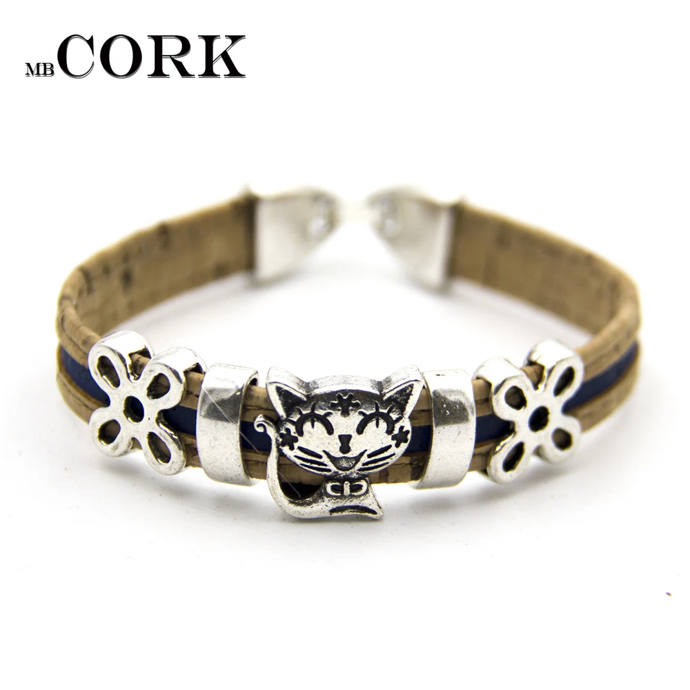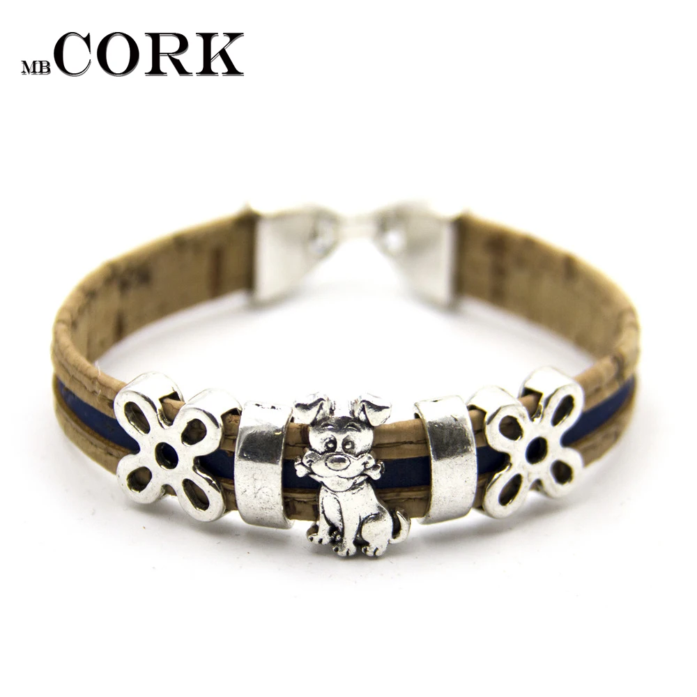 Cork jewelry cork bracelet for women natural cork with dog. Cat. Butterfly, fish, owl handmade animal bracelet ,BR-269-273