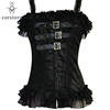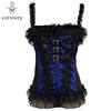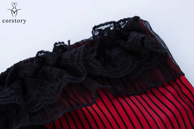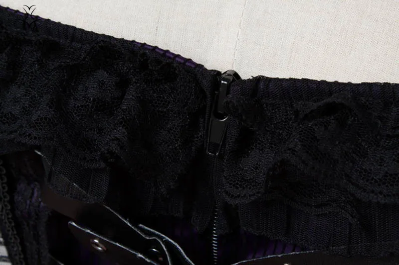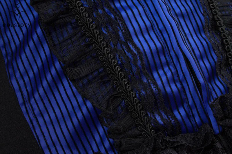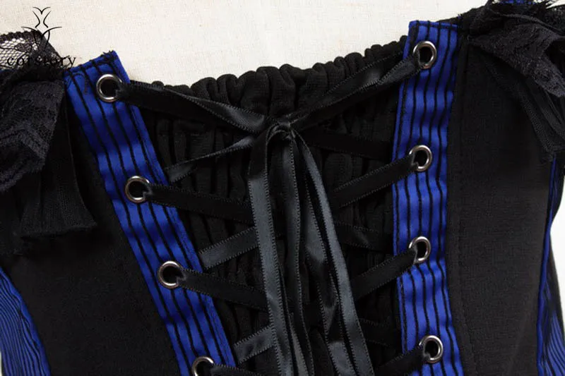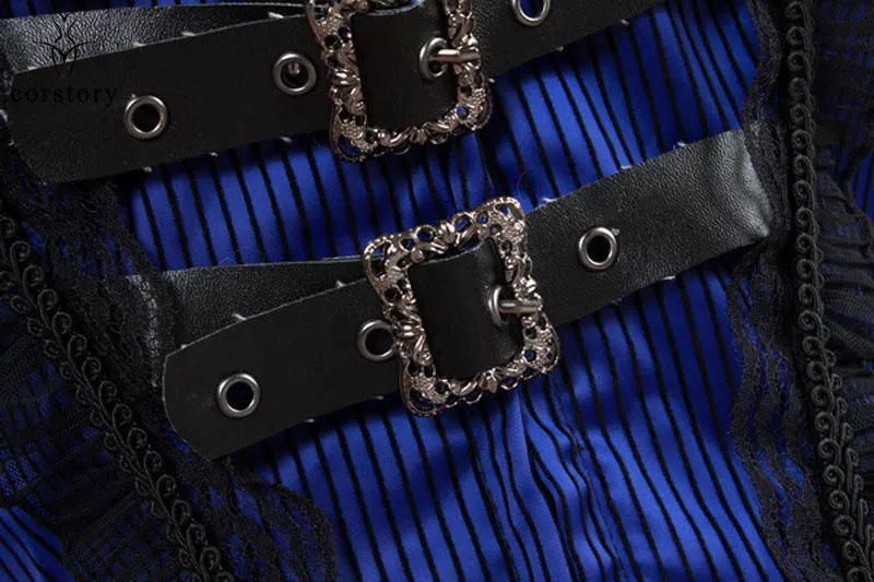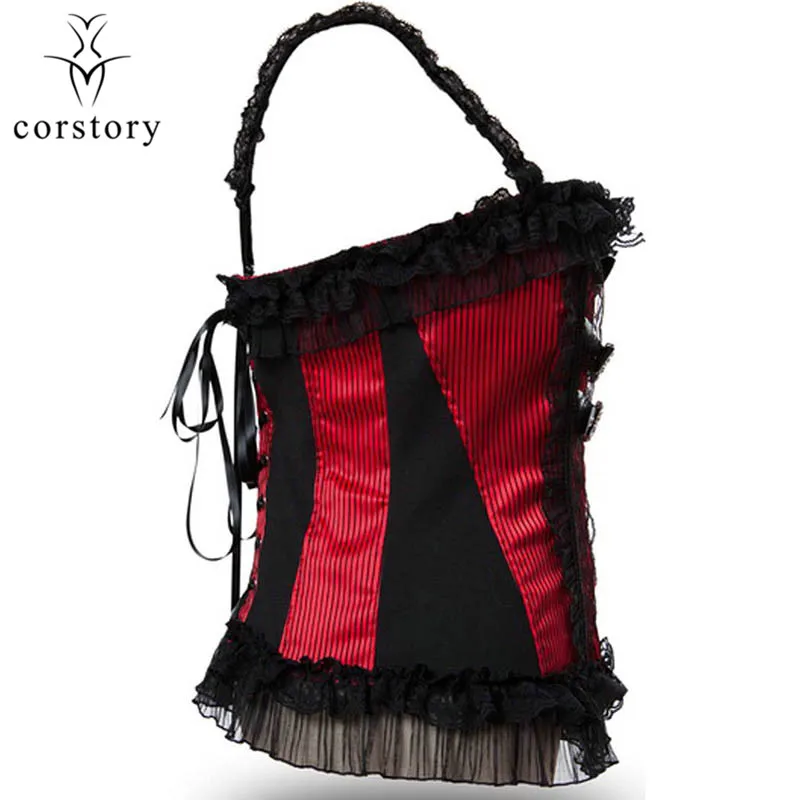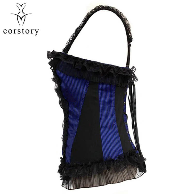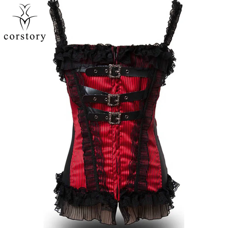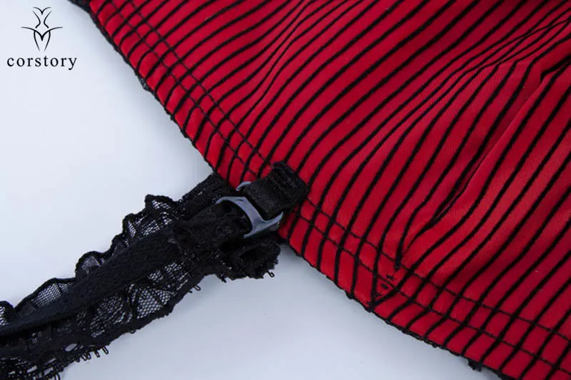 Corstory Black Satin Striped Lace Straps Overbust Corsets And Bustiers Sexy Zipper Gothic Burlesque Victorian Corsets