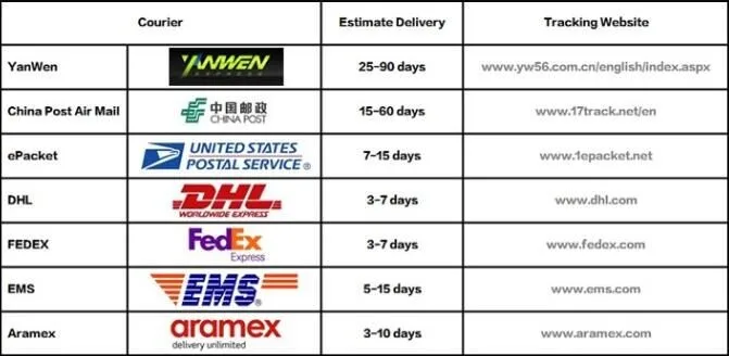 Packages from our warehouse in China will be shipped by ePacket or EMS depending on the weight and size of the product. Packages shipped from our US warehouse are shipped through USPS.