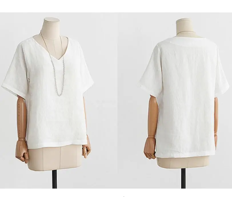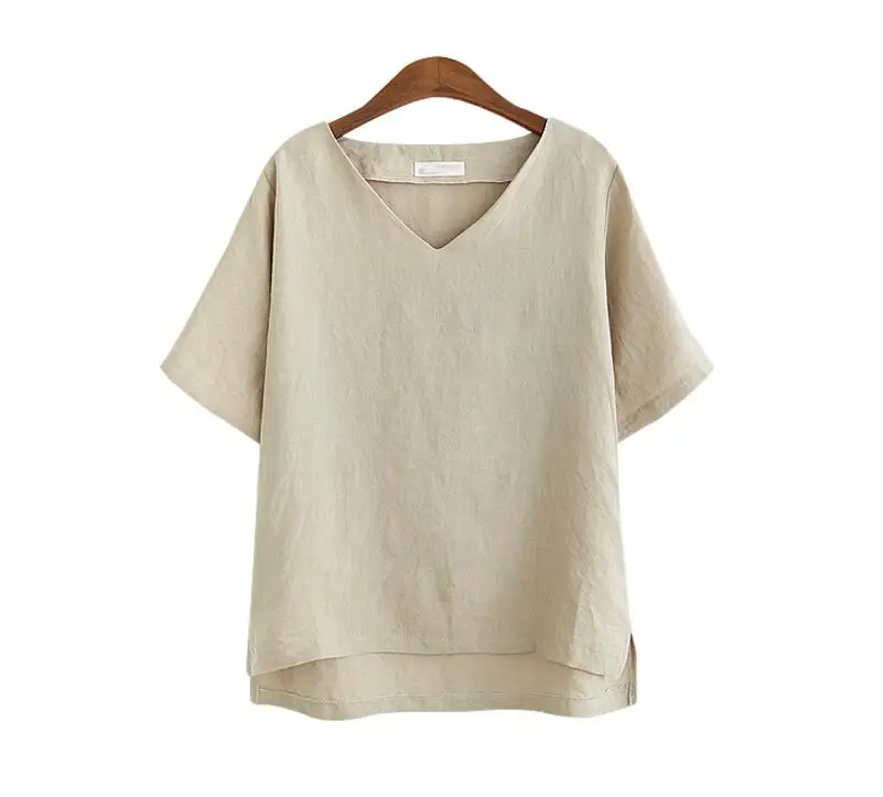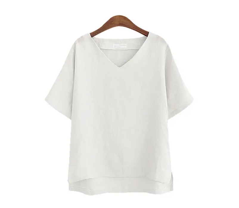 Cotton Linen Blouse Summer Short Sleeve Casual Shirt Women Tops Loose Blusa Mujer Vetement Femme Fashion Plus Size Women Blouses
