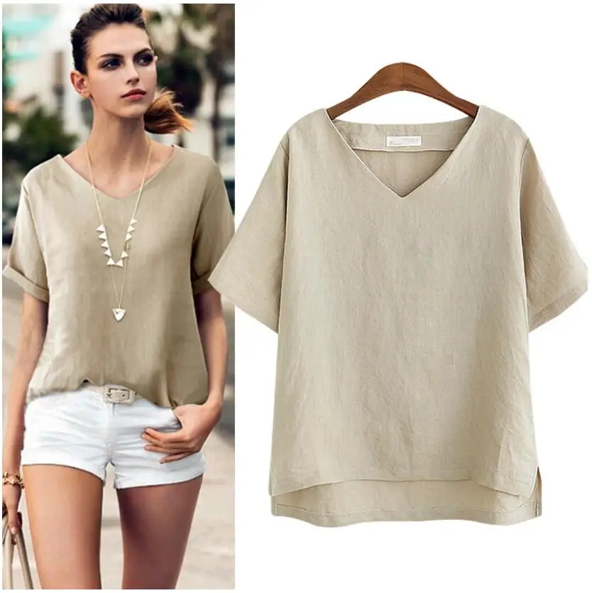 Cotton Linen Blouse Summer Short Sleeve Casual Shirt Women Tops Loose Blusa Mujer Vetement Femme Fashion Plus Size Women Blouses