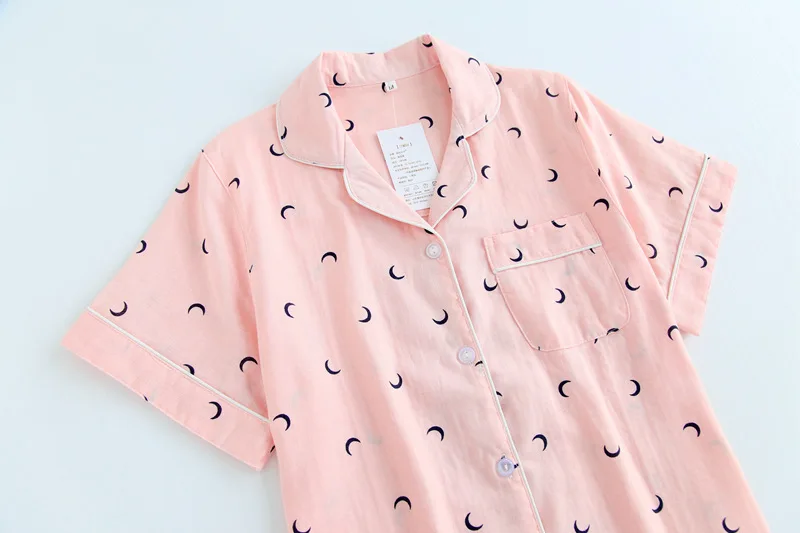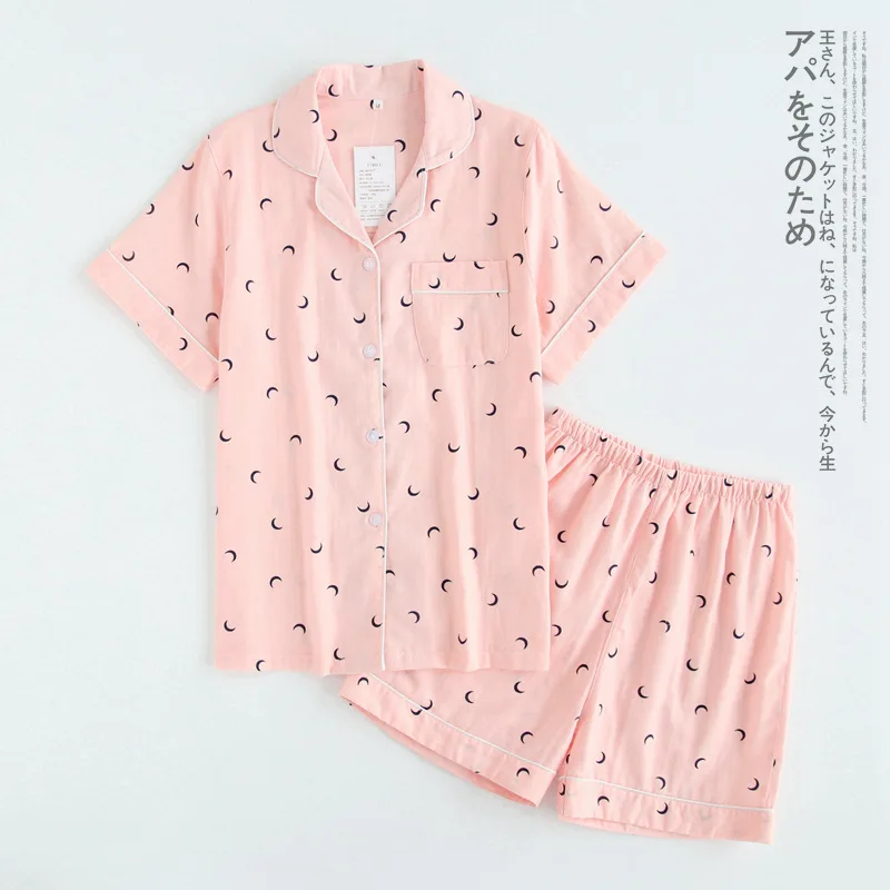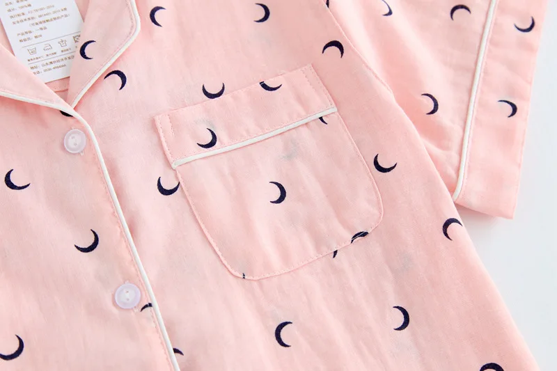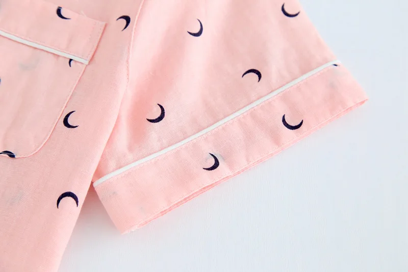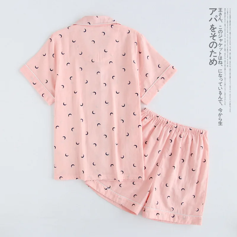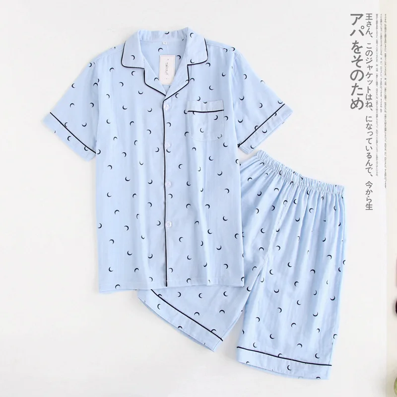 Couples simple moon blue pajamas sets men short pijama hombre Summer 100% gauze cotton short sleeves pyjamas korean pyjama homme