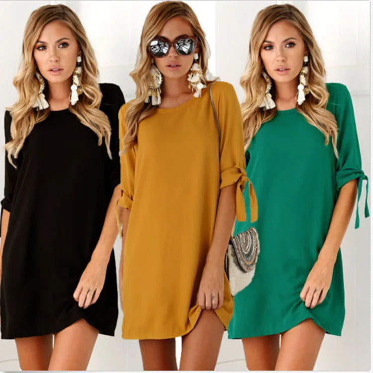 COZARII Summer Dress 2018 Women’s Short Sleeve Casual O-Neck Loose DressSolid color dress Beach Dresses Plus Size Vestidos