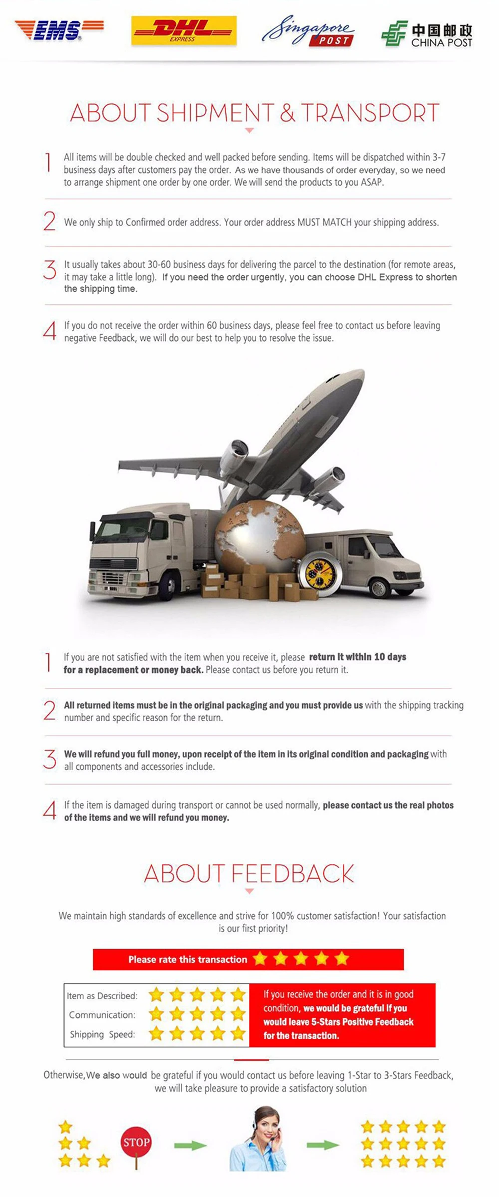 • If you did not receive the product within the guaranteed time( 45 days not including 2-5 day processing) you can request a refund or a reshipment.