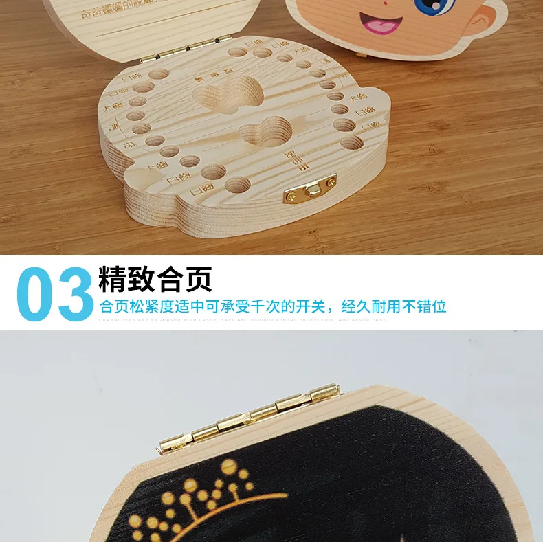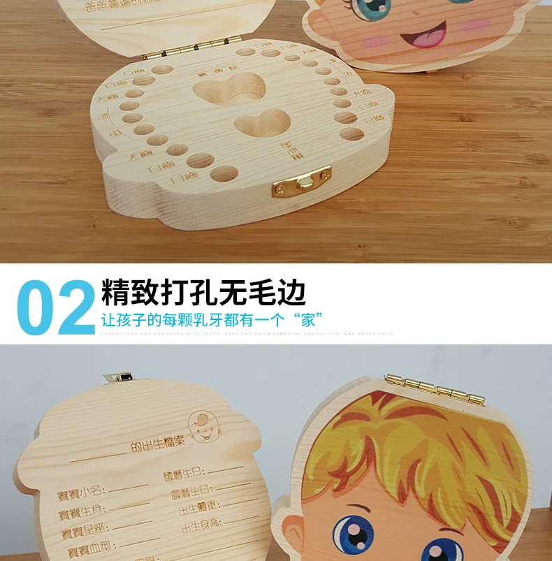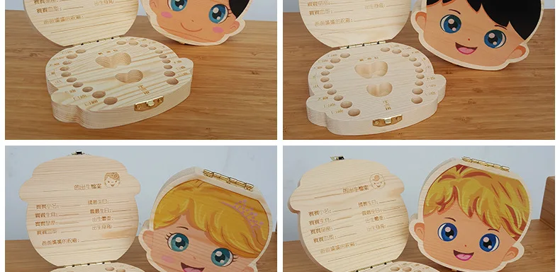 Creative Baby Tooth Box Organizer Save Boxes Milk Teeth Organizer Wood Storage Box Tooth Album Keepsake Souvenir Save Box Gifts
