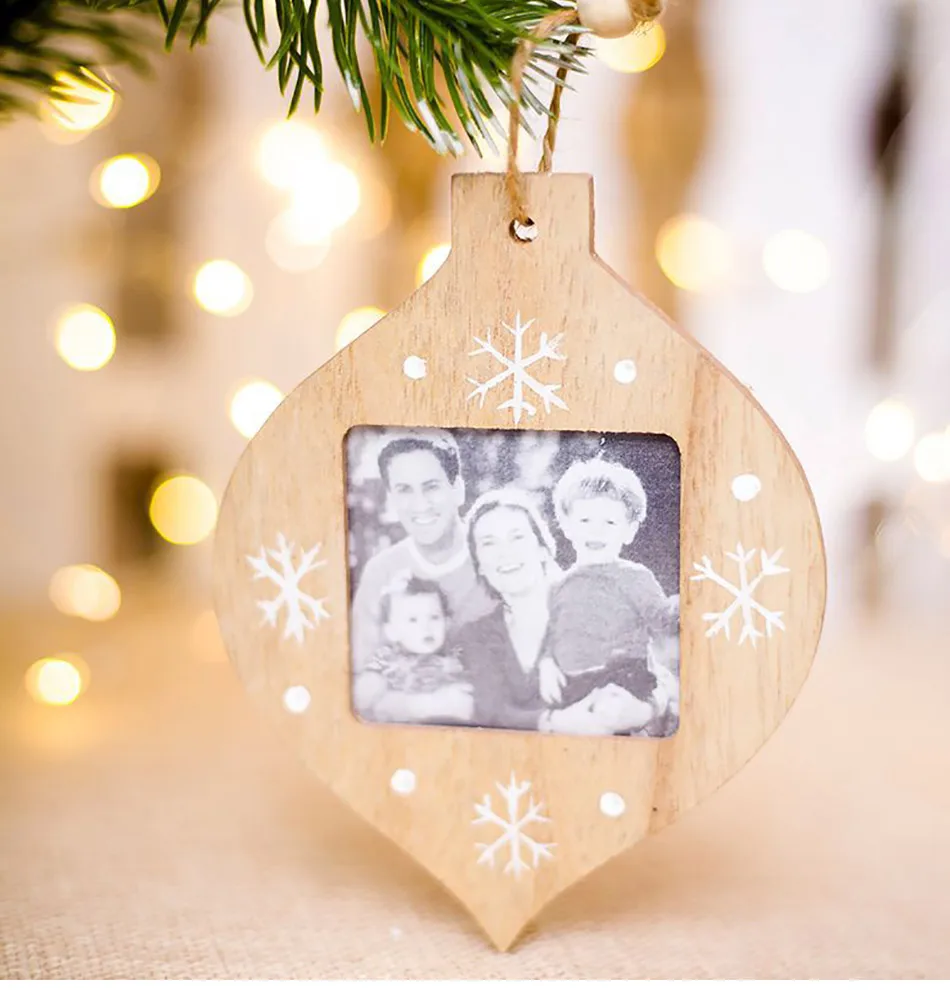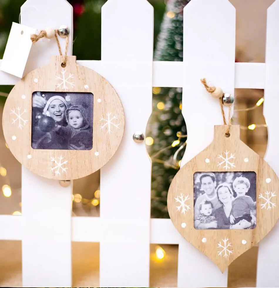Creative Wooden Photo Frame Christmas Tree Hanging Ornaments DIY Xmas Party Festival Decoration Pendant SA053