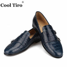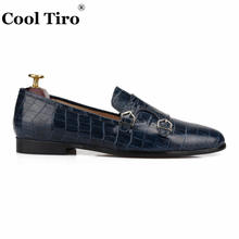 Crocodile print Double-Monk Loafers Men Moccasins SmokingSlippers Wedding Dress Shoes Men’s Flats Casual Shoes Leather Handmade
