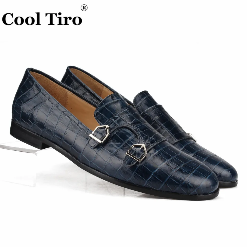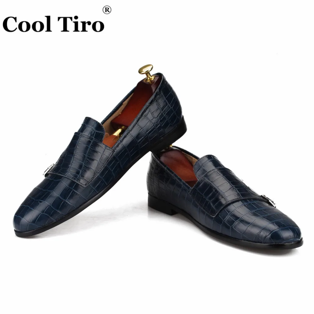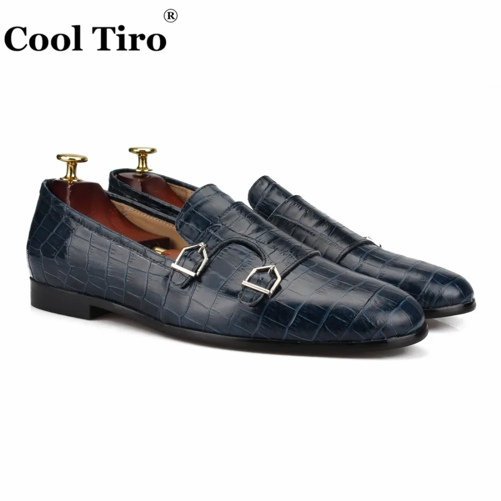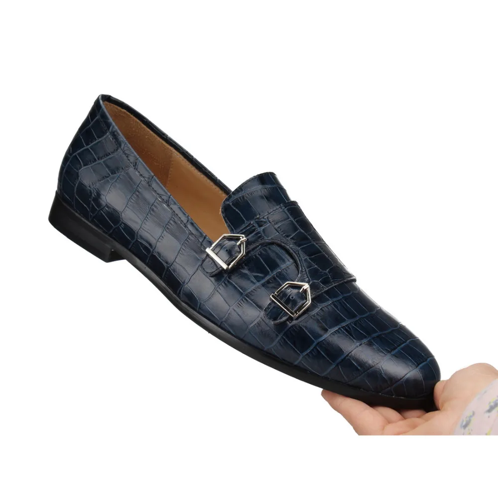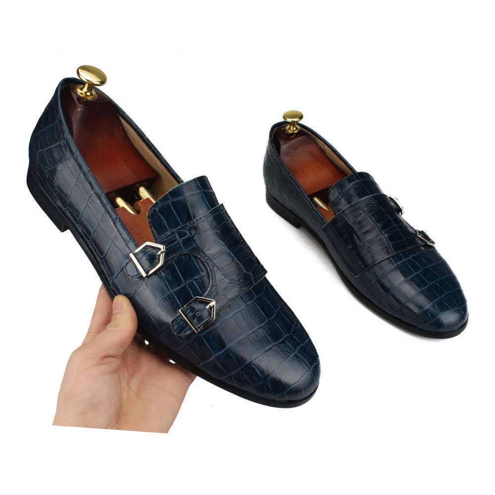 Crocodile print Double-Monk Loafers Men Moccasins SmokingSlippers Wedding Dress Shoes Men’s Flats Casual Shoes Leather Handmade