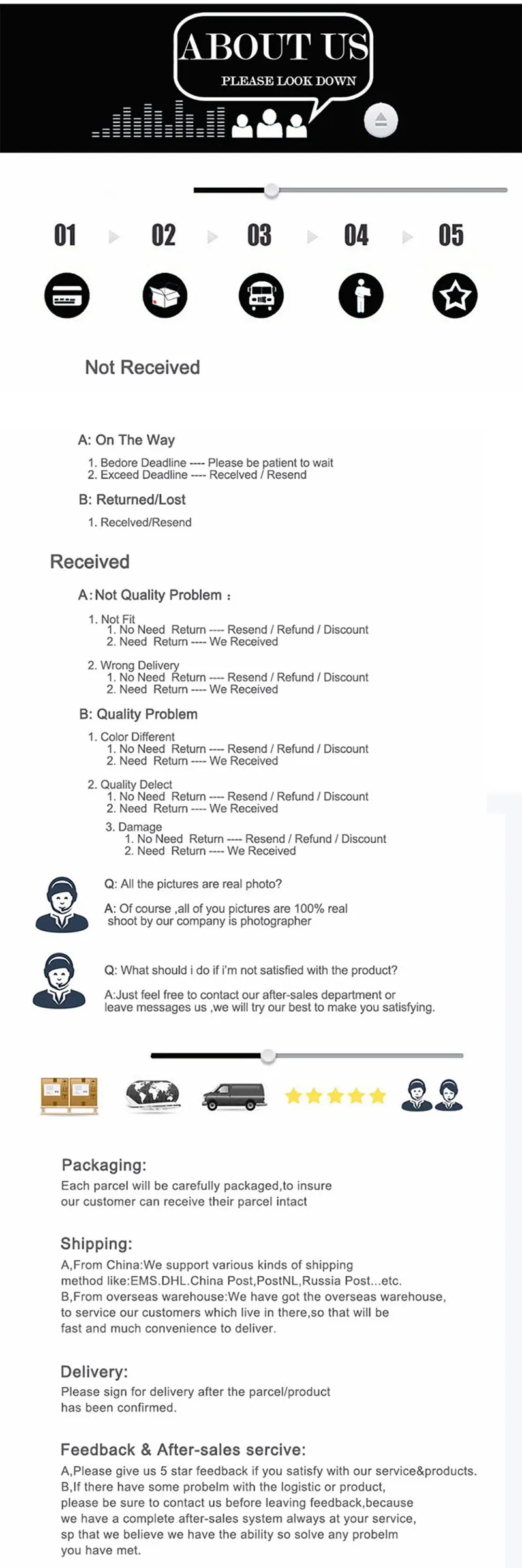 • If you did not receive the product within the guaranteed time( 45 days not including 2-5 day processing) you can request a refund or a reshipment.