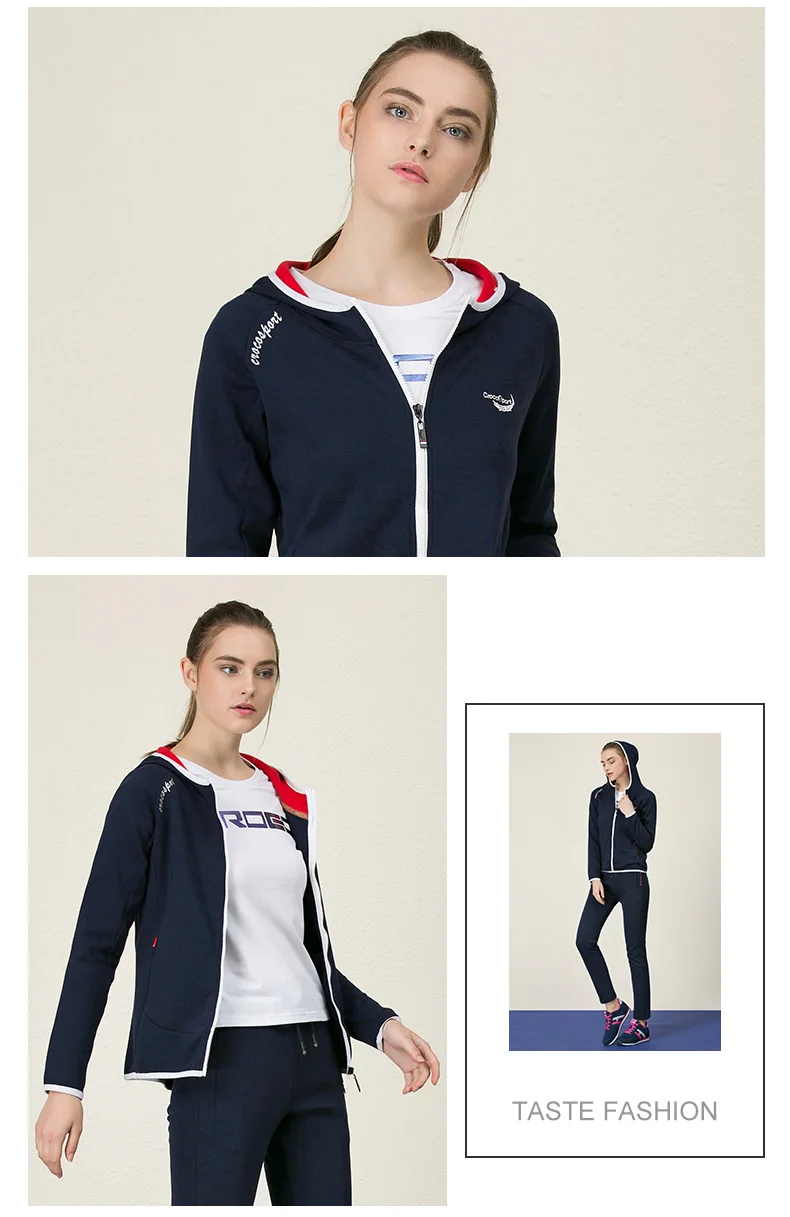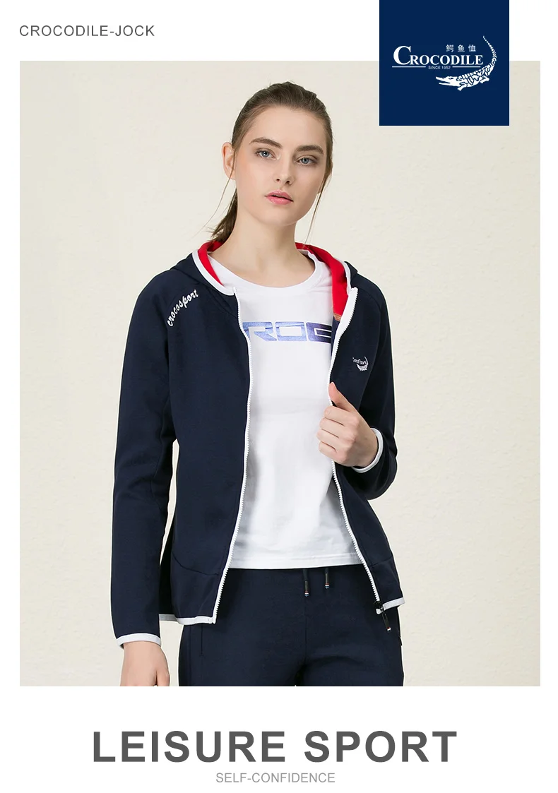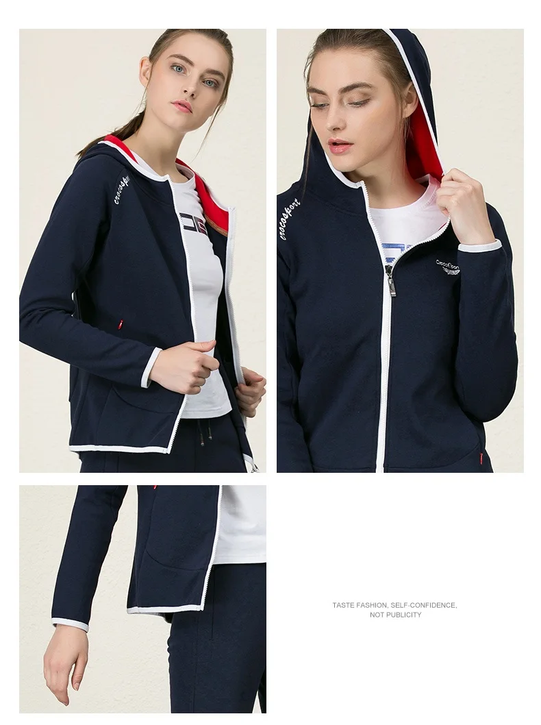 Crocosport Original New Women Hooded Sweater Jacket Femme Cotton Sport Apparel Trainning Exercise Sportswear for Women’s Top