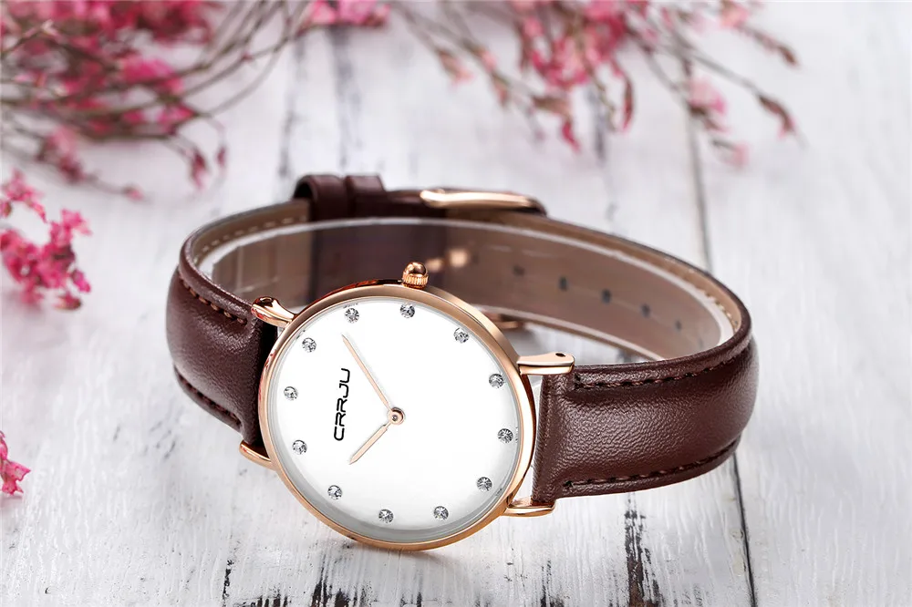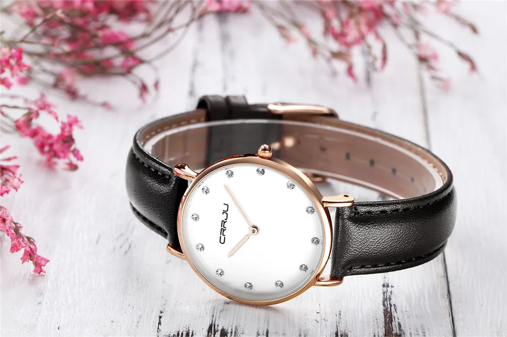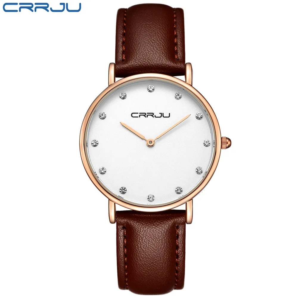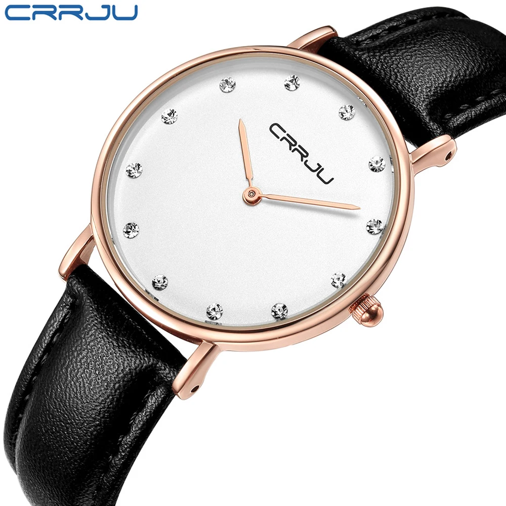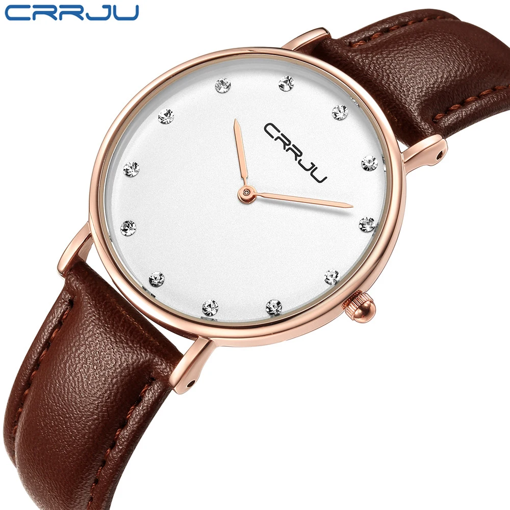 CRRJU Women Luxury Rhinestone Quartz Watches Lady Ultra-thin Fashion Classical Dress Leather Strap WristWatch Relogio Feminino