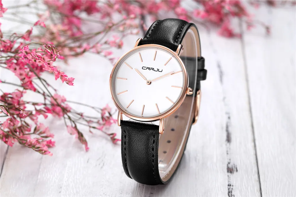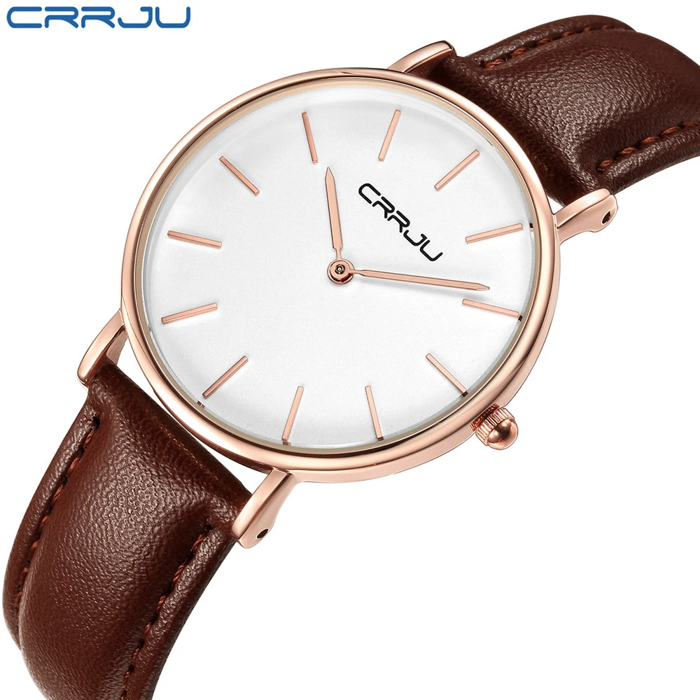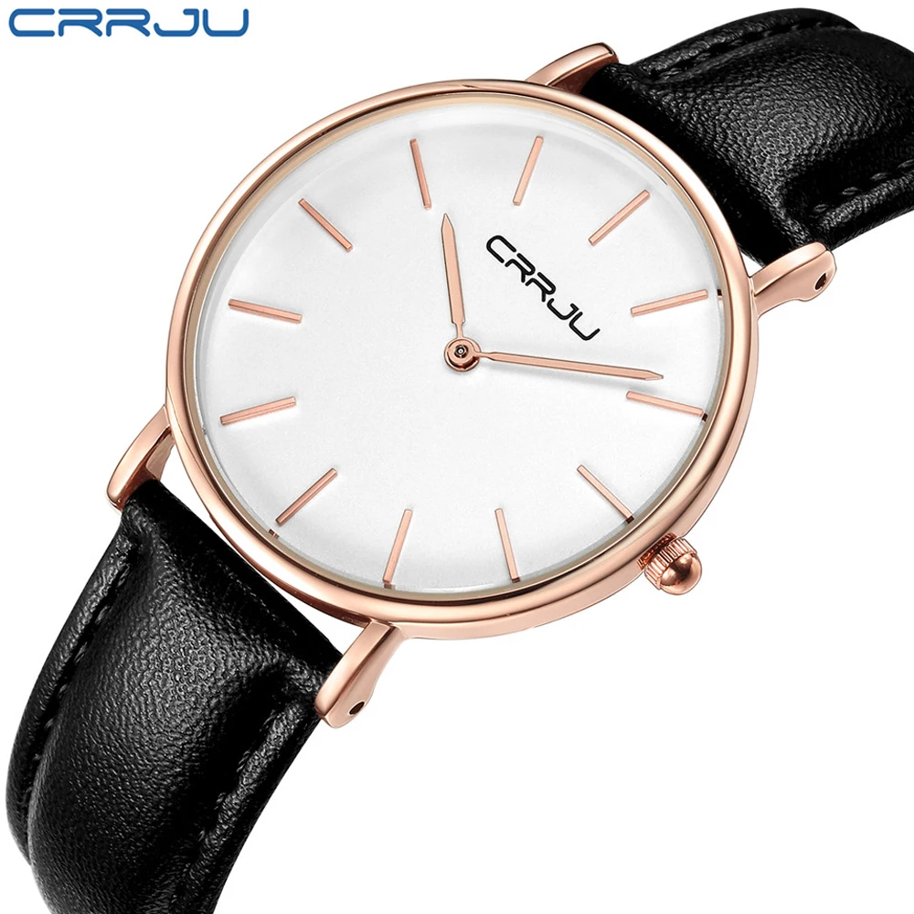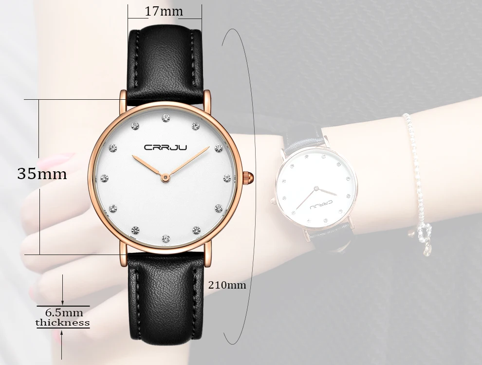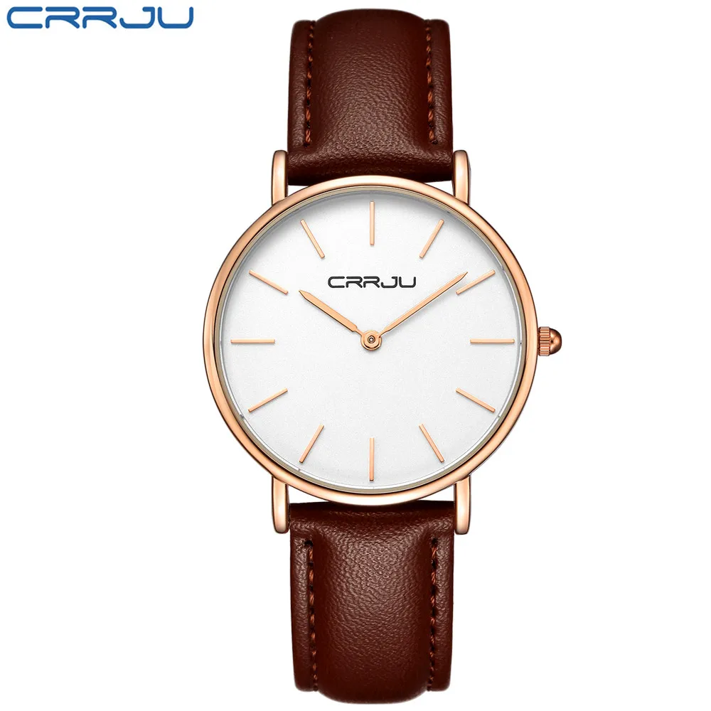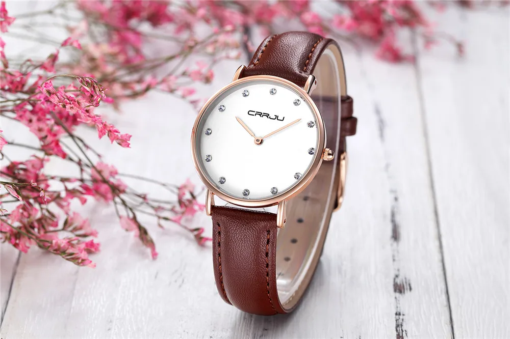 CRRJU Women Luxury Rhinestone Quartz Watches Lady Ultra-thin Fashion Classical Dress Leather Strap WristWatch Relogio Feminino