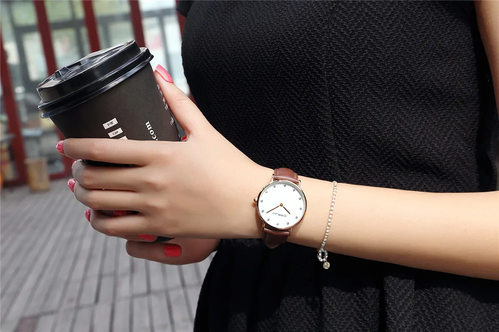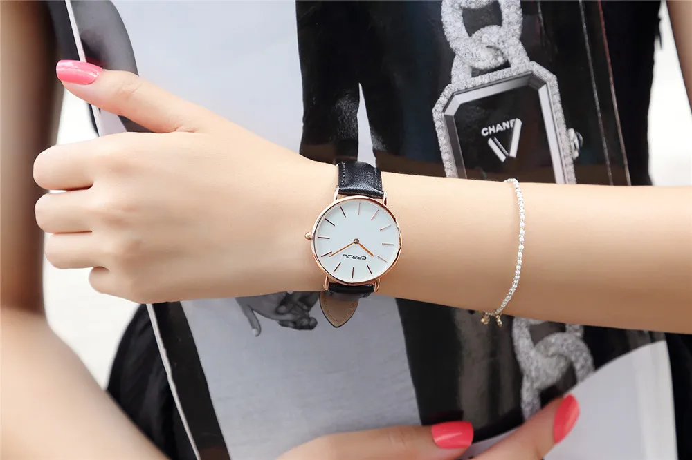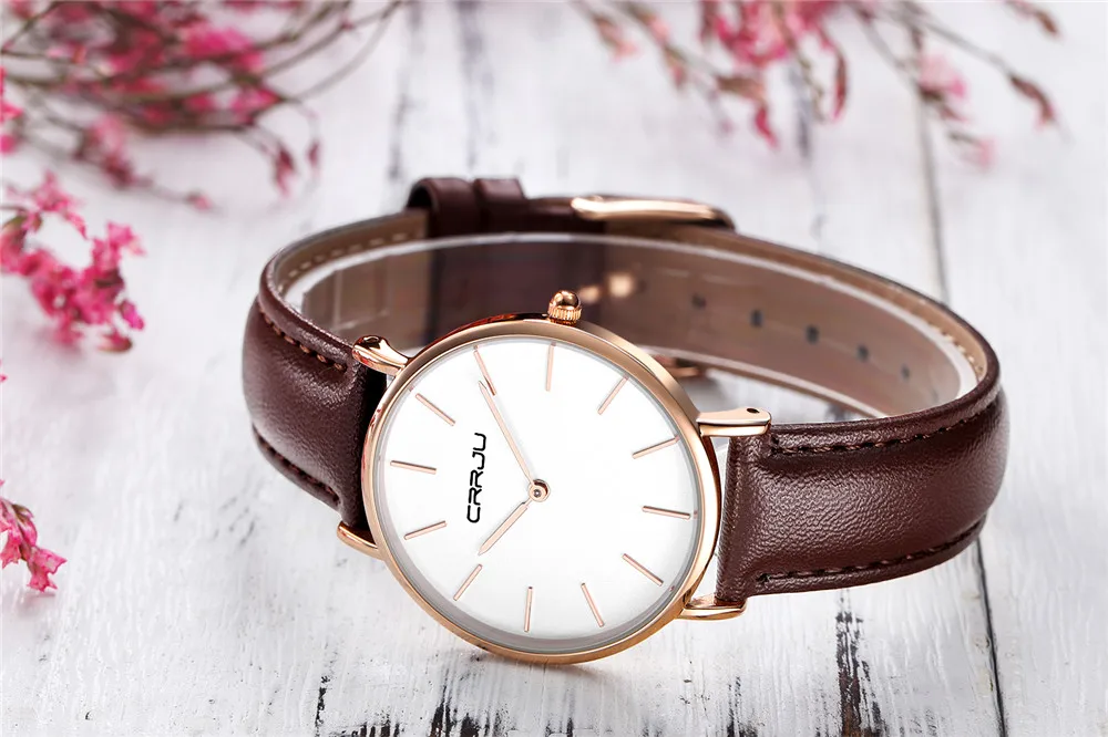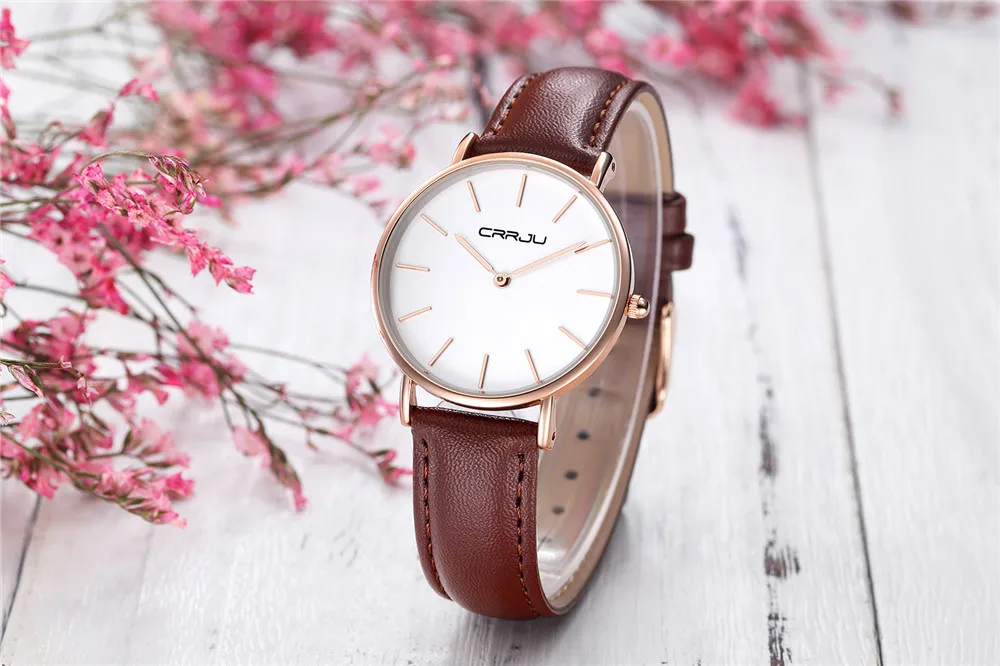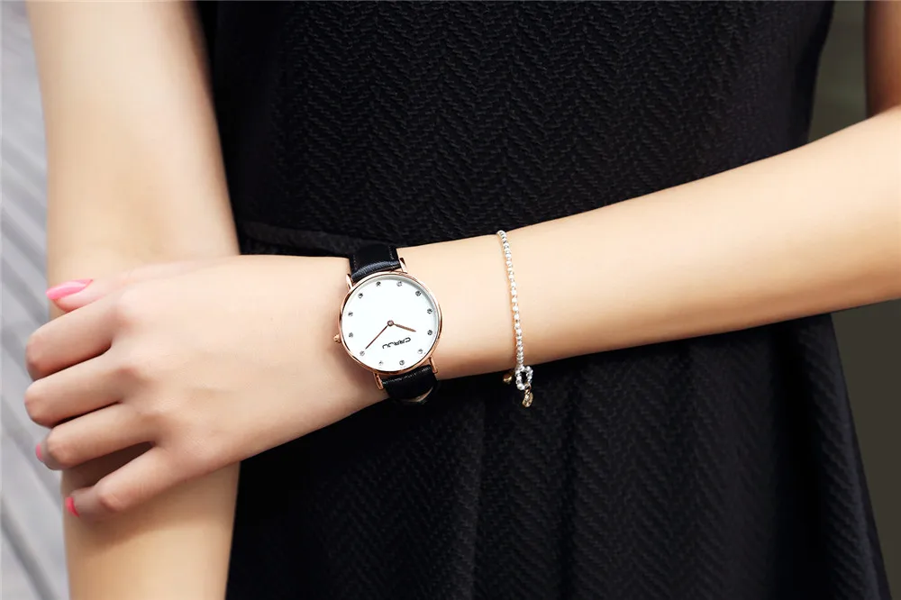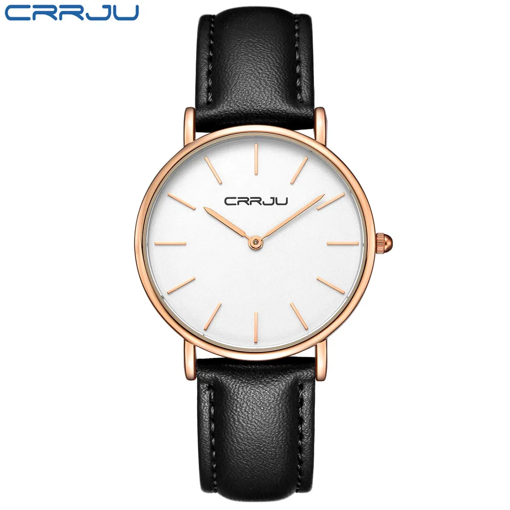 CRRJU Women Luxury Rhinestone Quartz Watches Lady Ultra-thin Fashion Classical Dress Leather Strap WristWatch Relogio Feminino