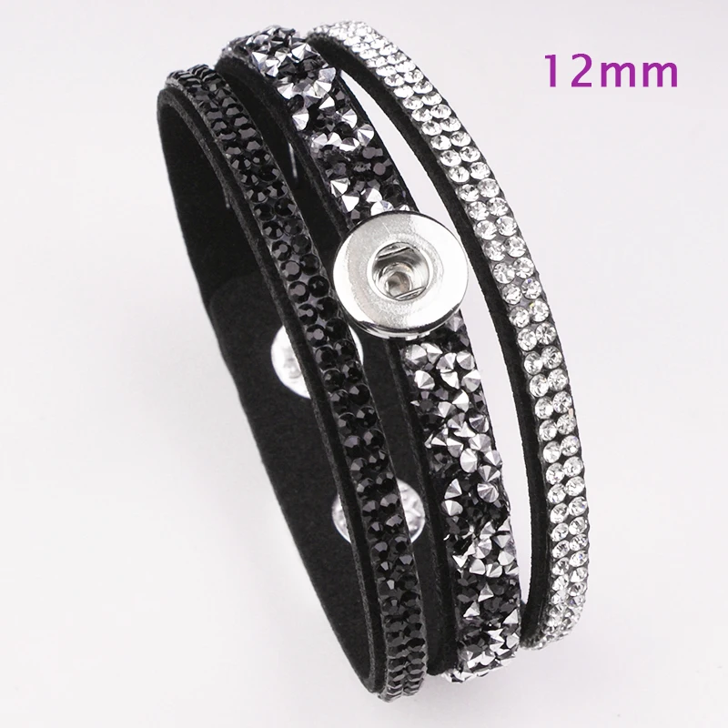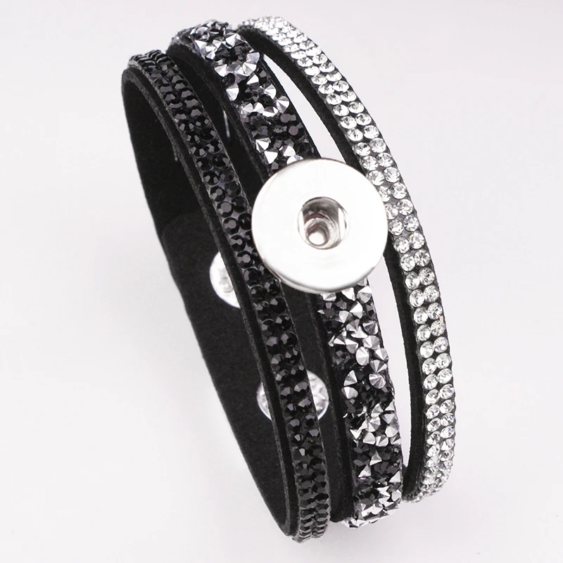crystal Korean velvet 18mm 12mm snap button bracelet GJ8161