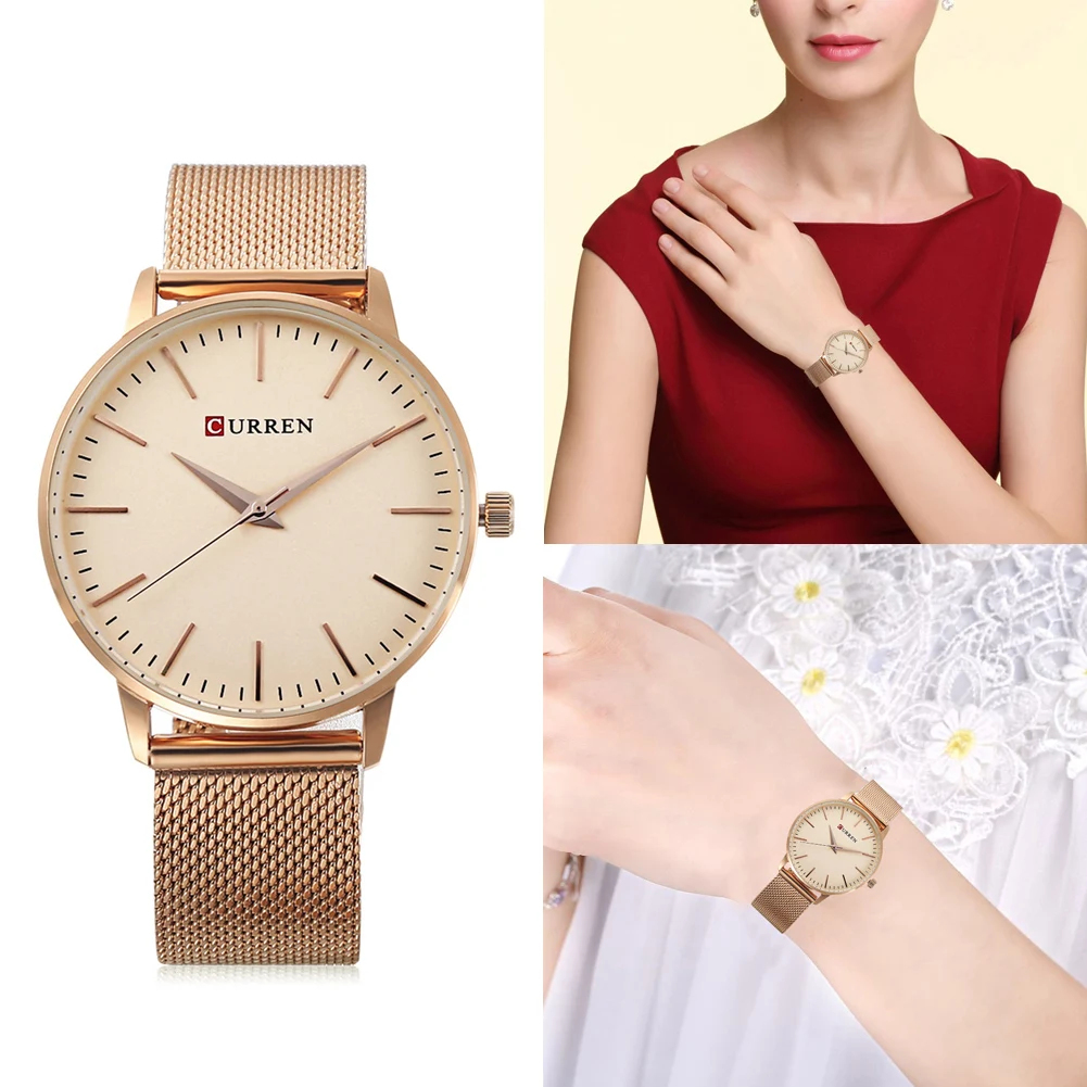 CURREN 9021 Luxury Brand Women Quartz Watch Fashion Ultra-Thin Ladies Stainless Steel Quartz Watch Gift Watch